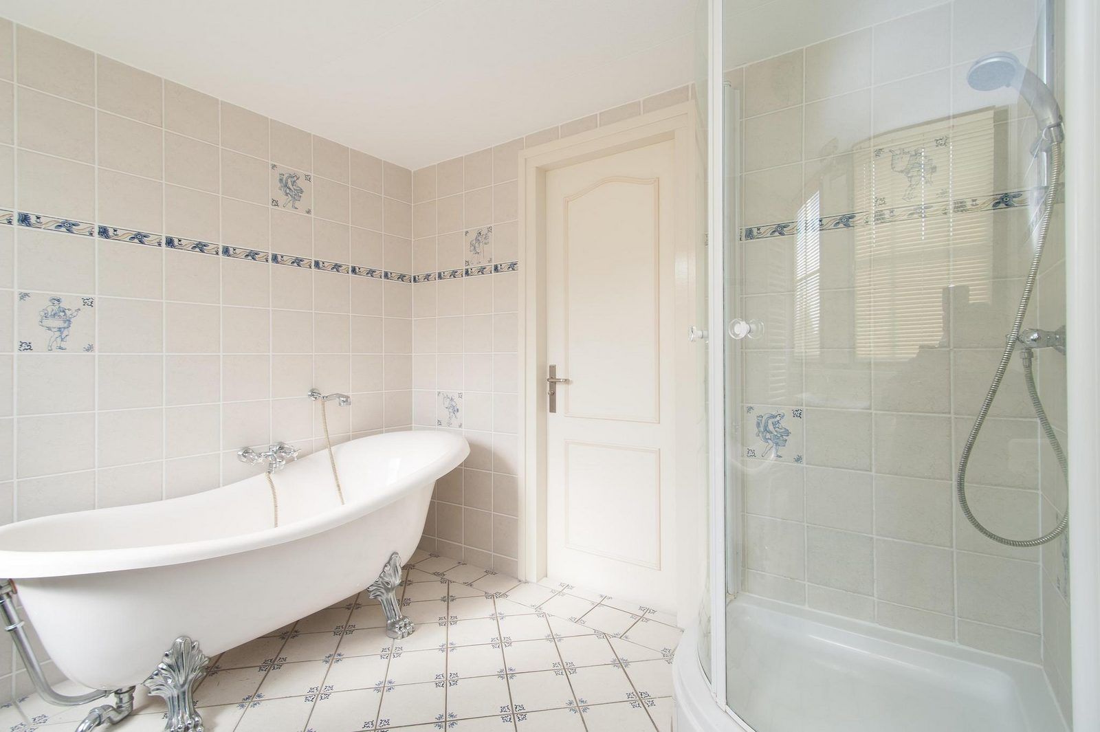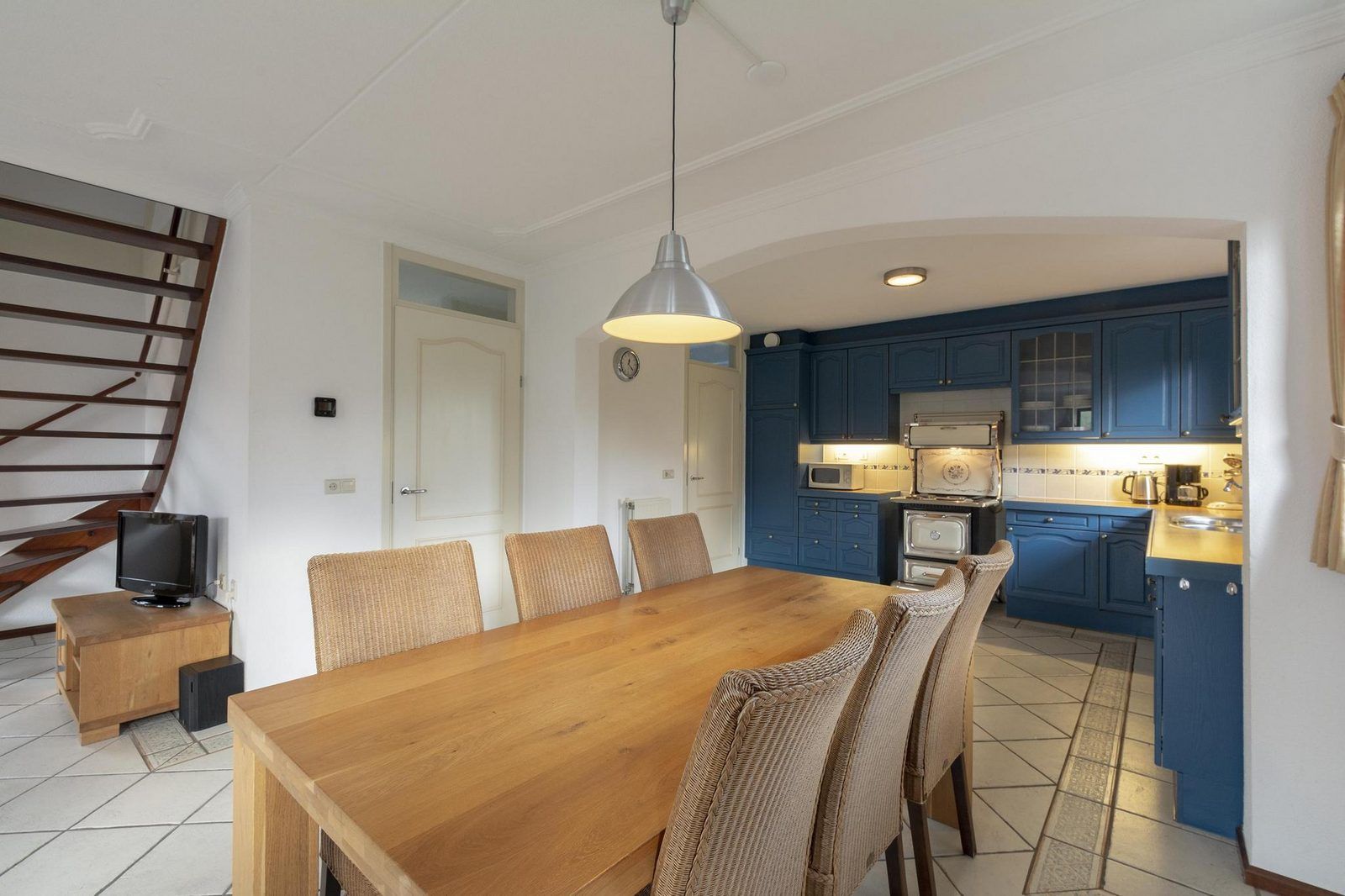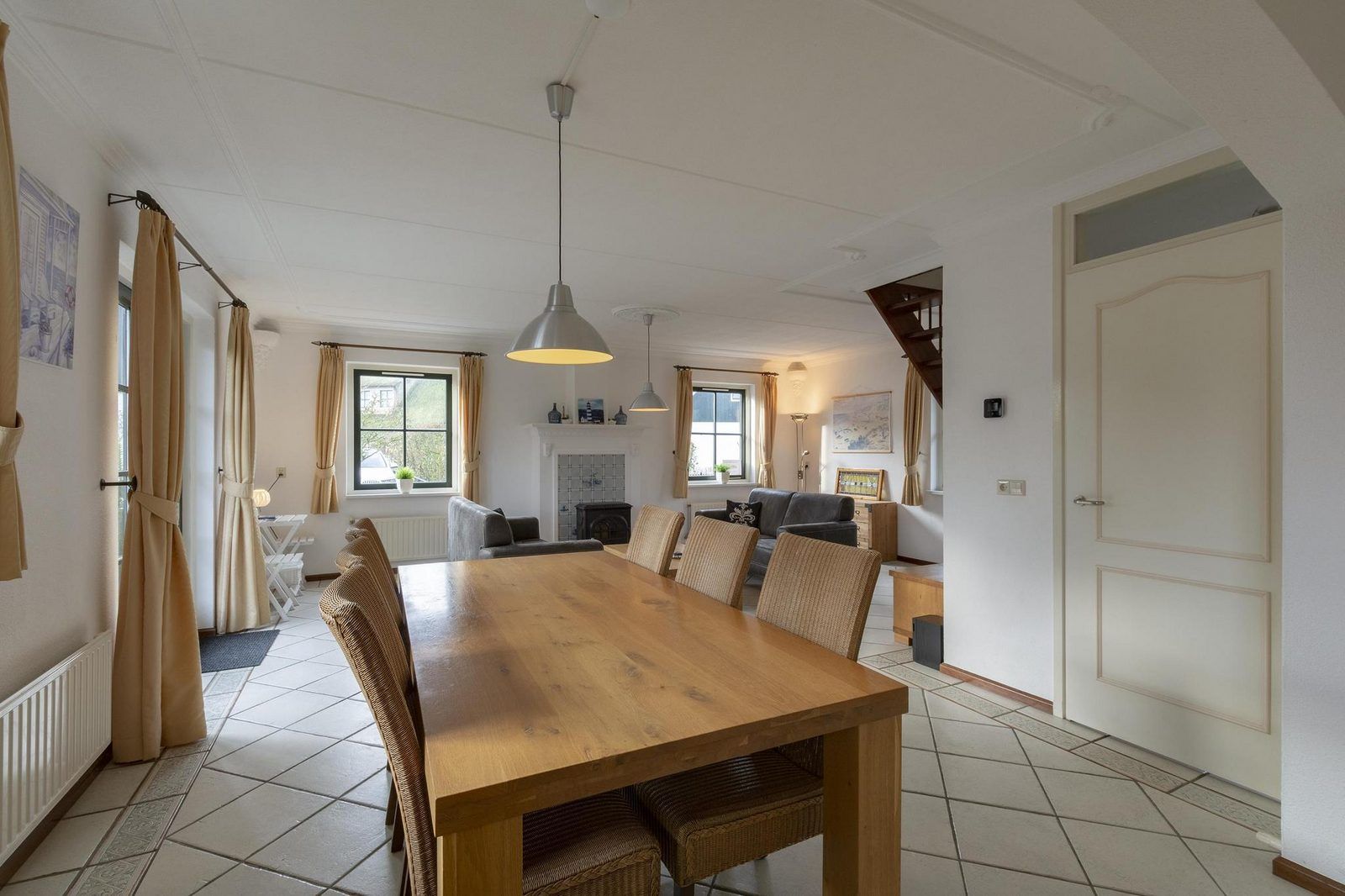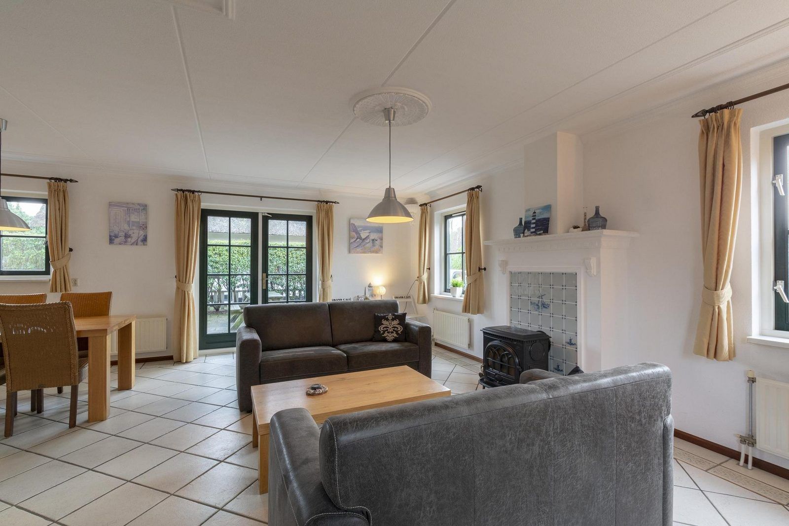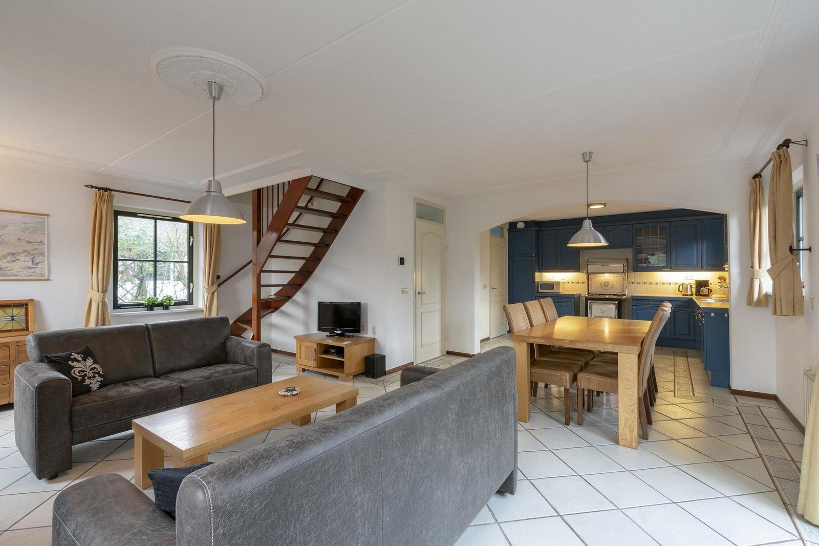 Les portes-fenêtres du salon donnent sur l'une des terrasses. Grâce au brise-vent, vous pourrez rapidement profiter de l'extérieur. Comme la maison est entourée de plusieurs terrasses, vous trouverez toujours un coin agréable pour vous détendre. De plus, le terrain est entièrement clôturé, ce qui est idéal si vous avez un chien !