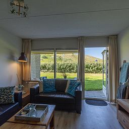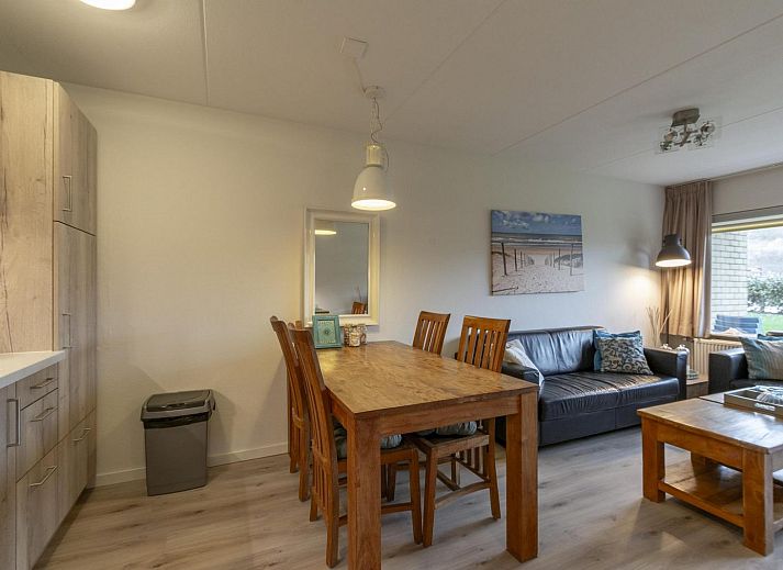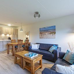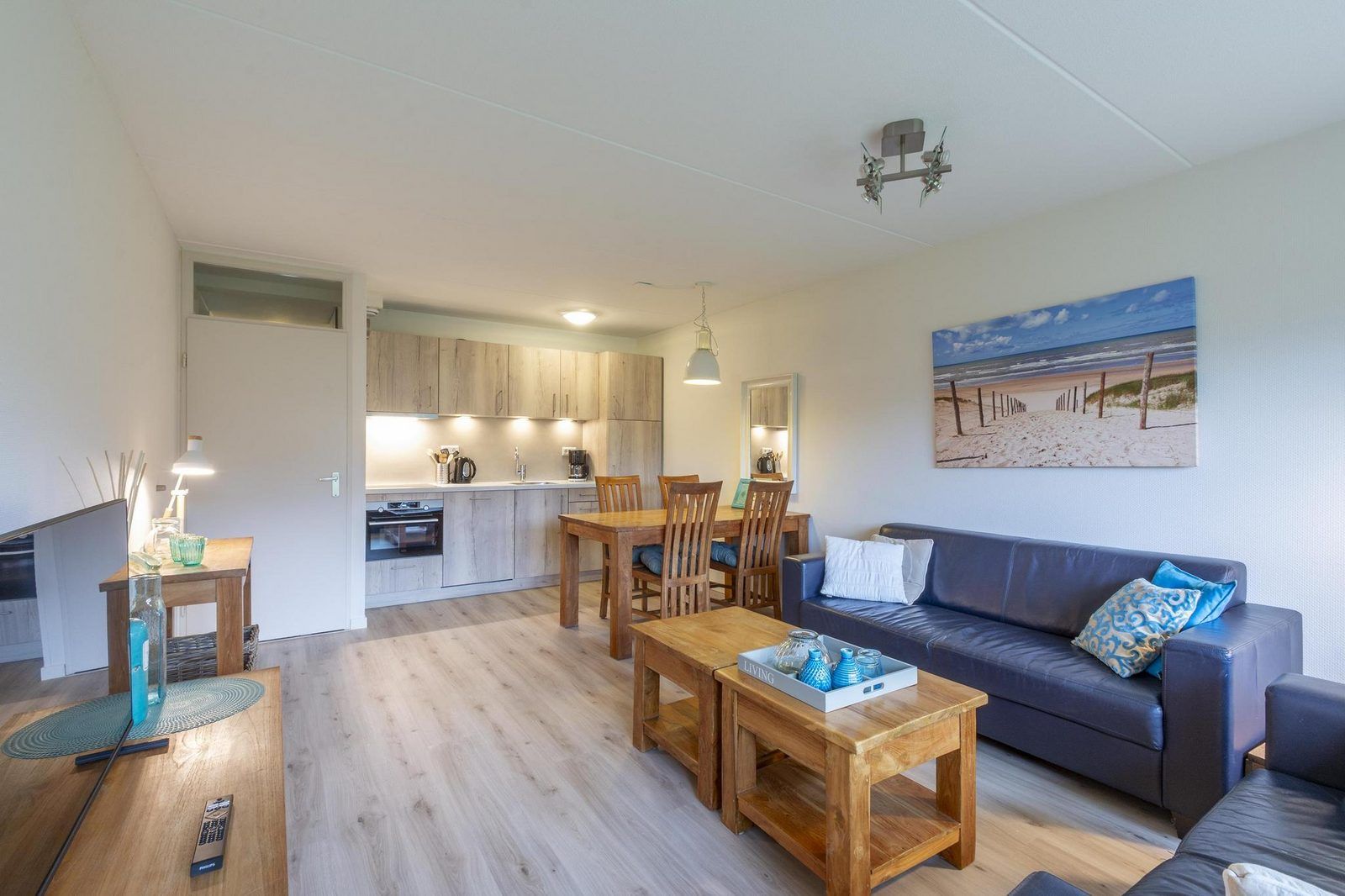 Cet appartement pour 4 personnes est aménagé avec goût et dispose d'un salon lumineux et agréable, d'un coin salon confortable et d'un coin repas agréable près de la cuisine ouverte. Depuis le salon, vous accédez directement à la grande terrasse avec vue sur les dunes. Vous pouvez littéralement entendre la mer.