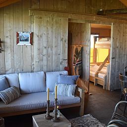 Nous avons spécialement conçu un super Kidz Lodge pour les enfants. Avec un mur d'escalade et un toboggan à l'intérieur de la tente. Et pendant que vous vous détendez sur votre véranda, vous pouvez voir vos enfants jouer, s'amuser et profiter de l'aire de jeux juste devant vous. Le Kidz Lodge est légèrement différent des autres lodges. Bien sûr, il est chaleureux et équipé de meubles robustes, tout à fait dans le style de Zon Zee Strand.