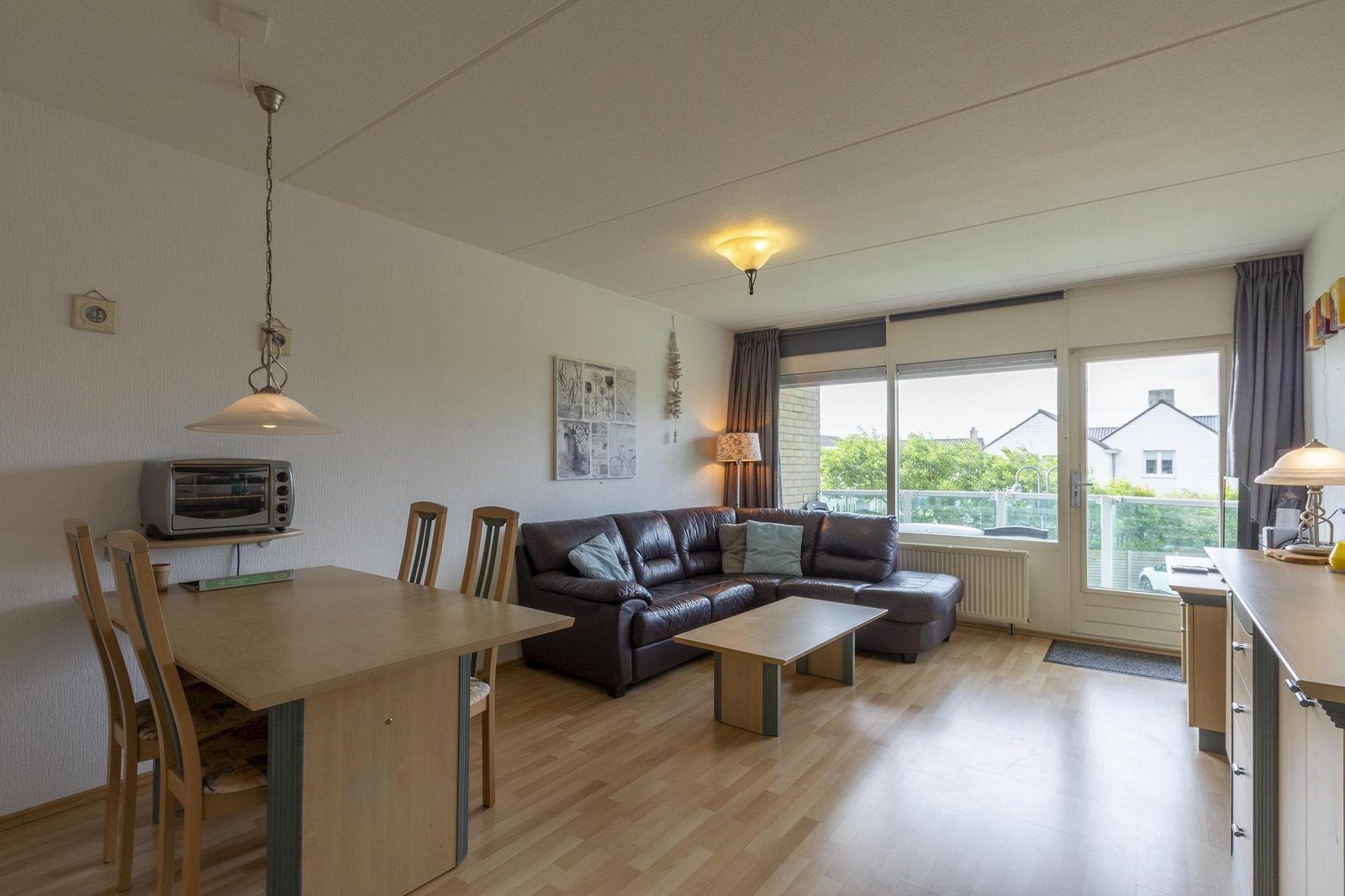 L'appartement Beach 29 dispose d'un salon confortable, avec cuisine ouverte et coin repas. Depuis le salon, vous accédez à un balcon équipé de mobilier de jardin et offrant une vue sur les magnifiques dunes de Callantsoog.