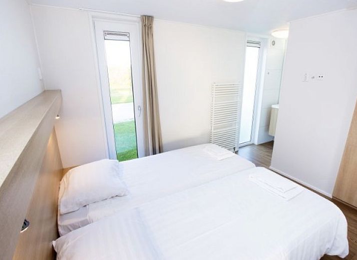 Lodge indépendant de six lits avec étage supérieur. Dans le salon, vous trouverez un coin salon avec Smart TV. La cuisine est équipée, entre autres, d'un lave-vaisselle, d'une cafetière, d'une bouilloire, d'un four à micro-ondes combiné et d'un réfrigérateur/congélateur. Au rez-de-chaussée se trouve une chambre à coucher avec deux lits simples à sommier et une salle de bains avec douche séparée. Il y a des toilettes séparées dans le couloir. A l'étage, il y a deux chambres avec un total de 2 lits simples à sommier et 1 lit superposé. Il y a également une salle de bain à l'étage avec une douche séparée. Le lodge dispose également d'un jardin avec des meubles. Vous pouvez utiliser le WiFi gratuitement et il y a un parking pour une voiture au lodge.