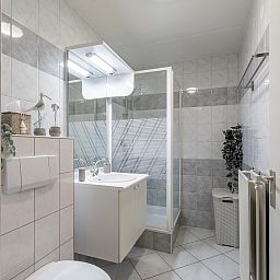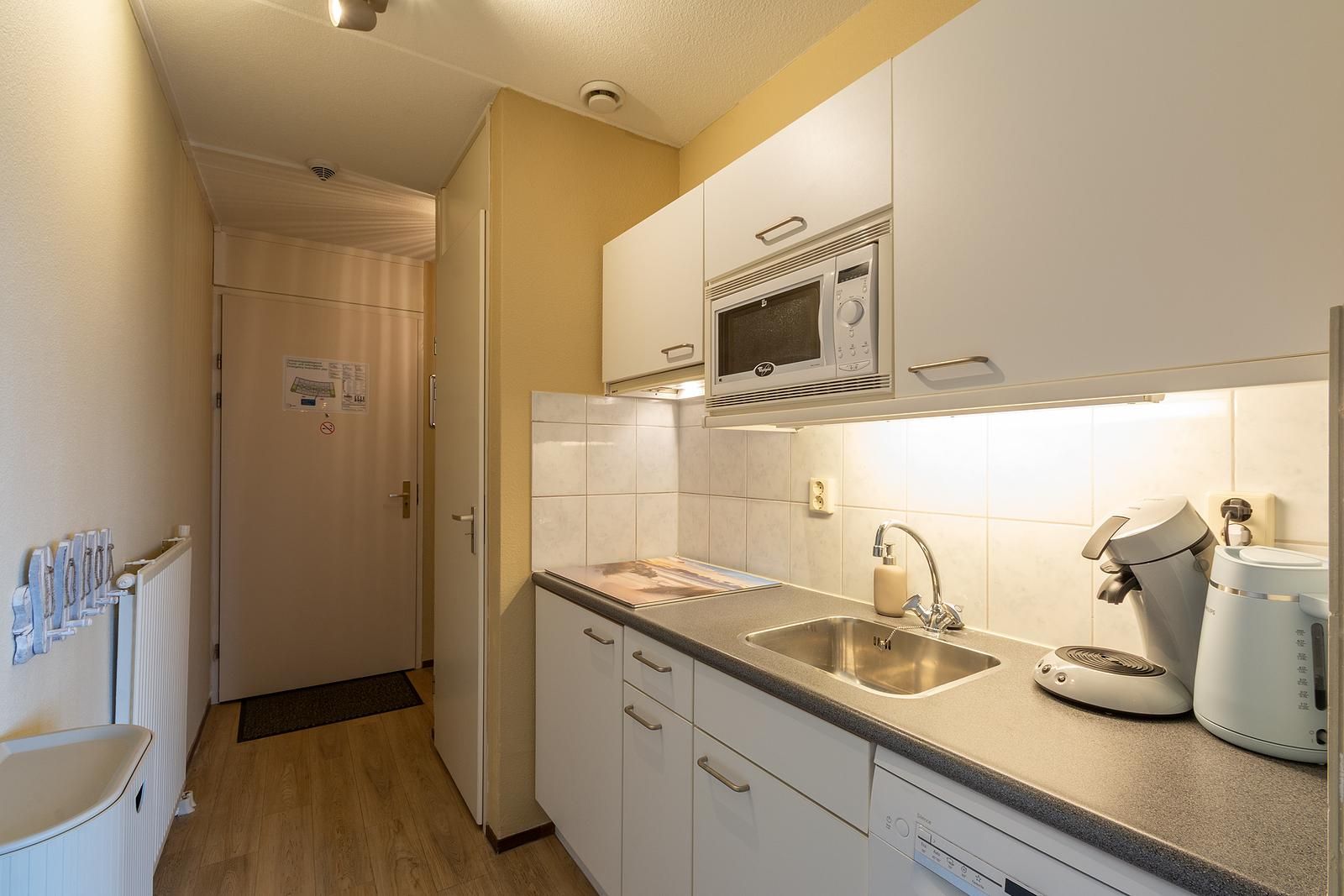 Le salon dispose d'un coin salon confortable avec un canapé-lit et d'un coin repas convivial. La cuisine est également entièrement équipée pour pouvoir cuisiner ensemble. La chambre est dotée d'un lit boxspring extrêmement confortable et offre suffisamment d'espace de rangement. La salle de bains comprend une douche agréable, un lavabo et des toilettes.