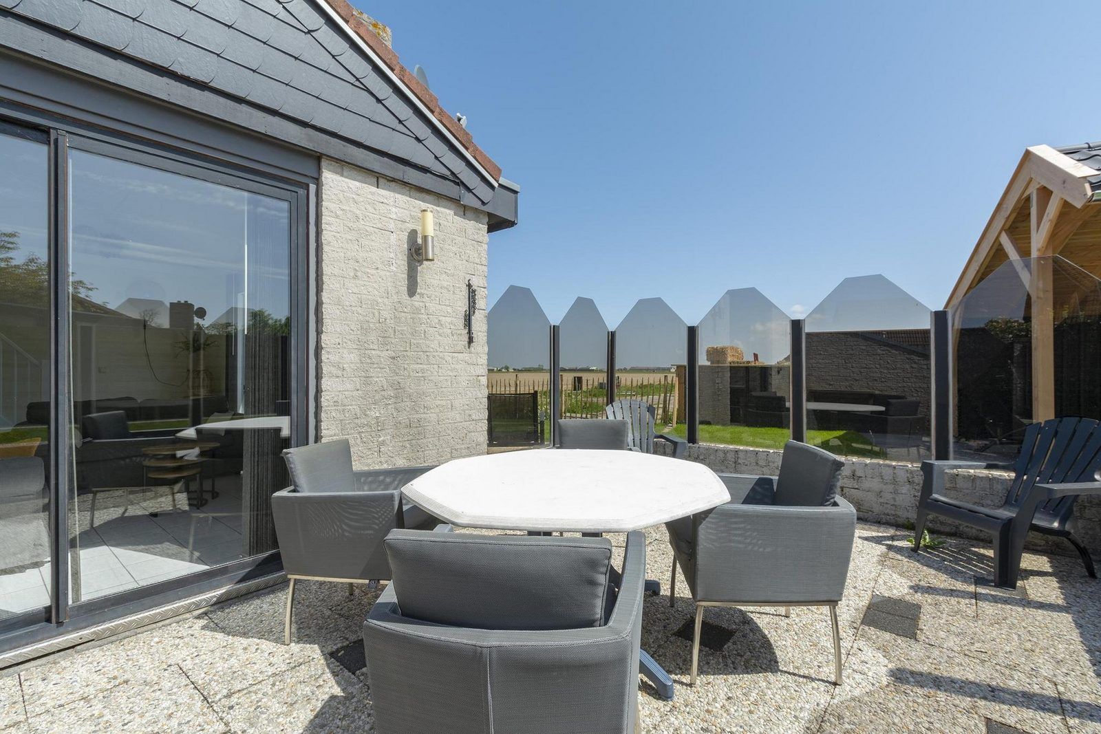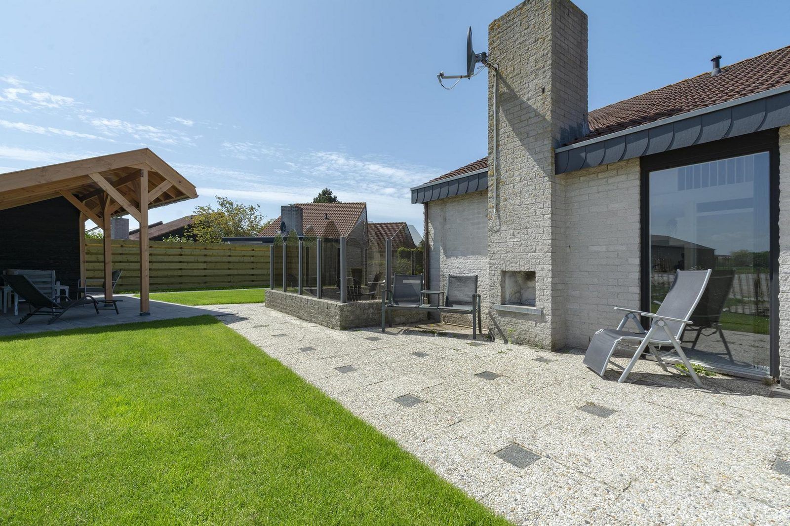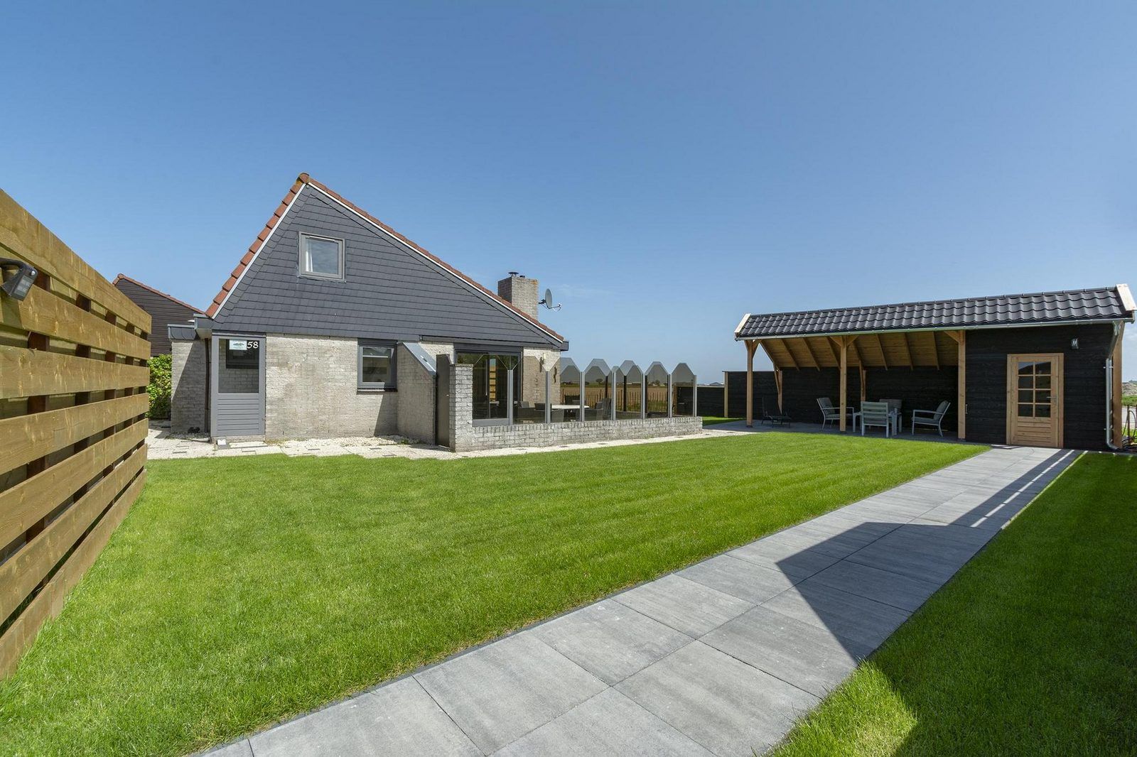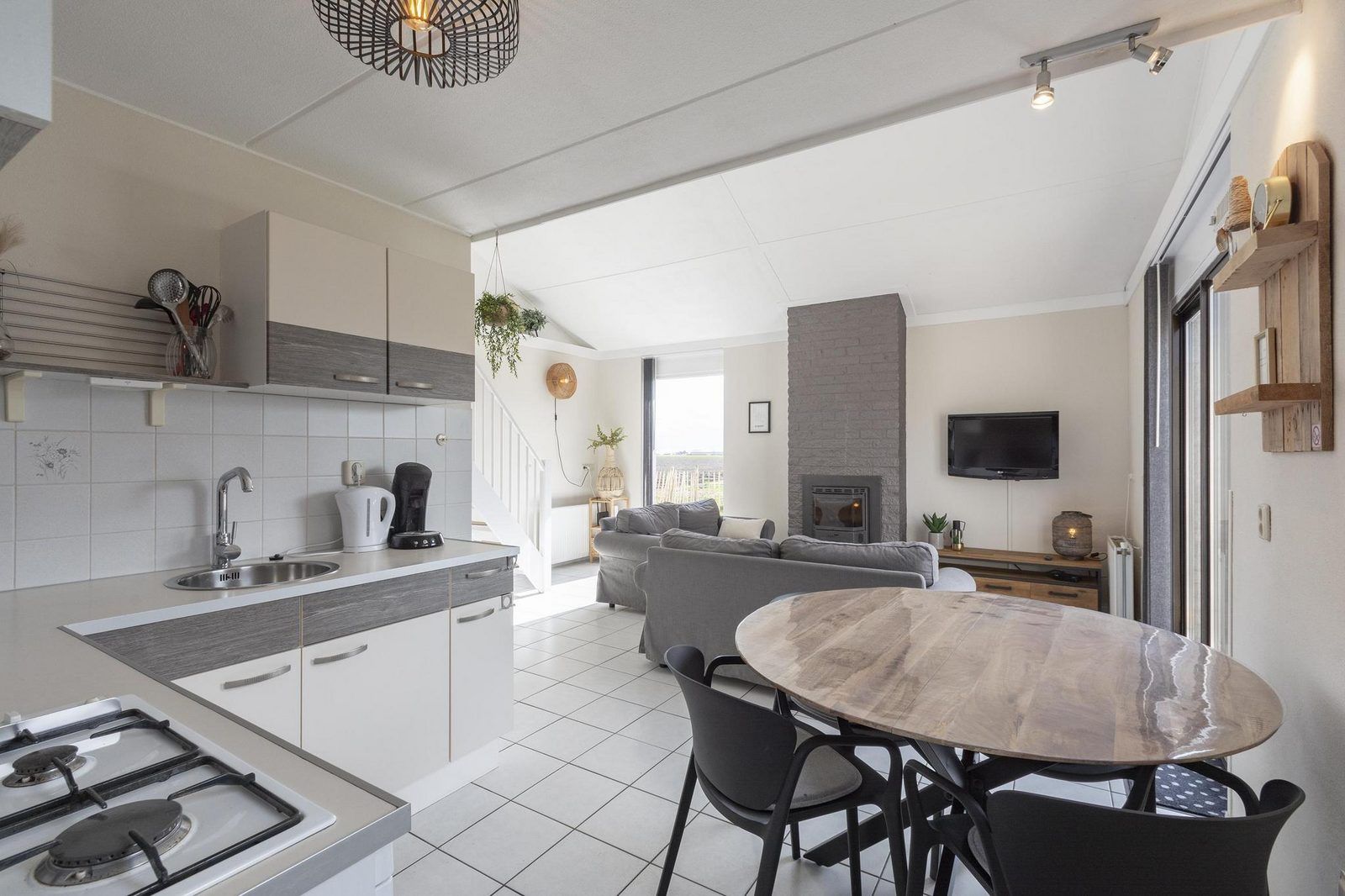 Le salon avec cuisine ouverte est équipé de tout le confort nécessaire et donne directement sur la terrasse, où vous pourrez profiter d'une brise agréable. La maison dispose de 3 chambres, dont 1 au rez-de-chaussée. La salle de bains se trouve également au rez-de-chaussée et est équipée d'une cabine de douche.