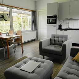 There is a private parking space for your car. The garden has a large lawn and a (partially covered) sun terrace with Weber grill, comfortable loungers, a parasol and a dining table with chairs. The garden is completely fenced, so that children can play in the garden carefree. There is also a barn with a washing machine and storage space for your beach items.