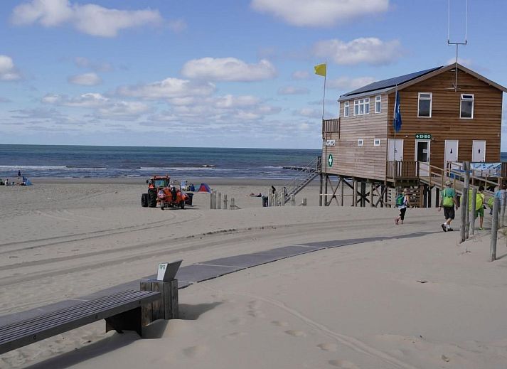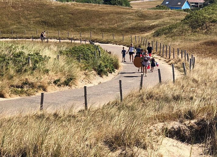 The holiday bungalow is located on a small, spacious holiday park 'De Zandloper', directly behind the dunes. The holiday home is only 5 minutes away on foot (500 m) from the beach leading ramp. The footpath through the dune is then about 300m long. In the immediate vicinity of the park you will find relaxation on the beach and many hiking and biking trails, numerous attractions and a subtropical swimming pool (3 km). The long and wide beach and the diverse surroundings will enchant you. There are various beach pavilions and in the summer season the beach is guarded by the coastal lifeguards.