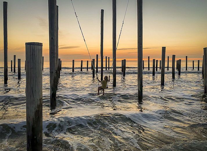 Aan de rand van strand en zee verrijst het indrukwekkende Palendorp, een kunstzinnige herinnering aan het verleden van Petten. De 160 houten palen vormen een mystiek silhouet van een kerk en huizen, een eerbetoon aan het dorp dat ooit door de zee werd verzwolgen. Hier, waar geschiedenis en natuur samenkomen, voel je de kracht van het water en de veerkracht van de gemeenschap. En op de iconische schommel, wiegend in de zeewind, ervaar je even hoe het is om deel uit te maken van dit bijzondere verhaal.