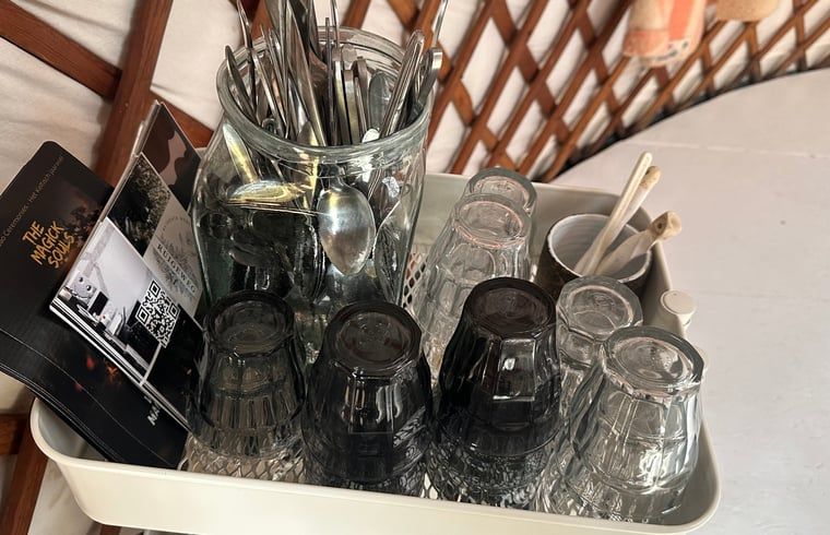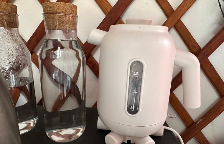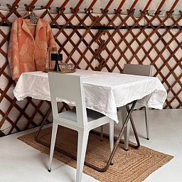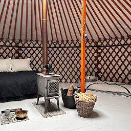 La yourte mongole originale, d'un diamètre de 6,3 mètres, est joliment meublée et équipée d'un poêle à bois central qui apporte chaleur et sécurité. Pas de wifi, pas de surstimulation - juste vous, le feu qui crépite et le rythme de la nature. L'électricité, la bouilloire et la vaisselle sont fournies dans la yourte. Près de la cabane se trouve une armoire avec une cuisinière, des casseroles, des ustensiles de cuisine et un réfrigérateur.