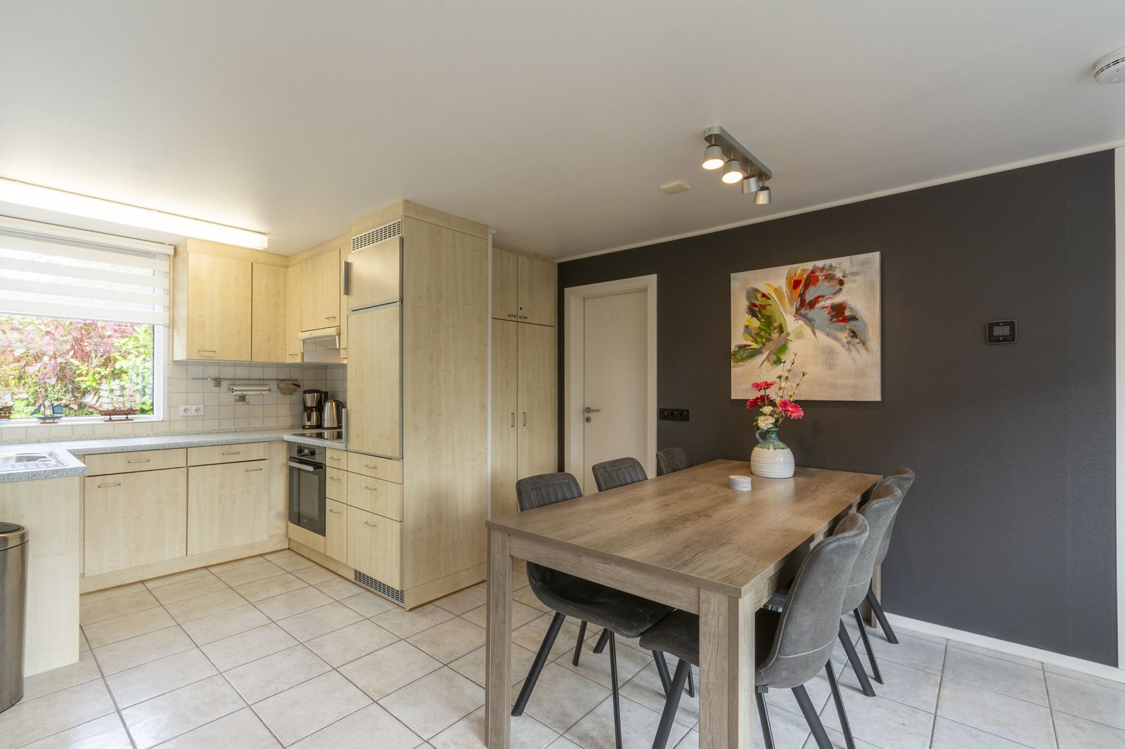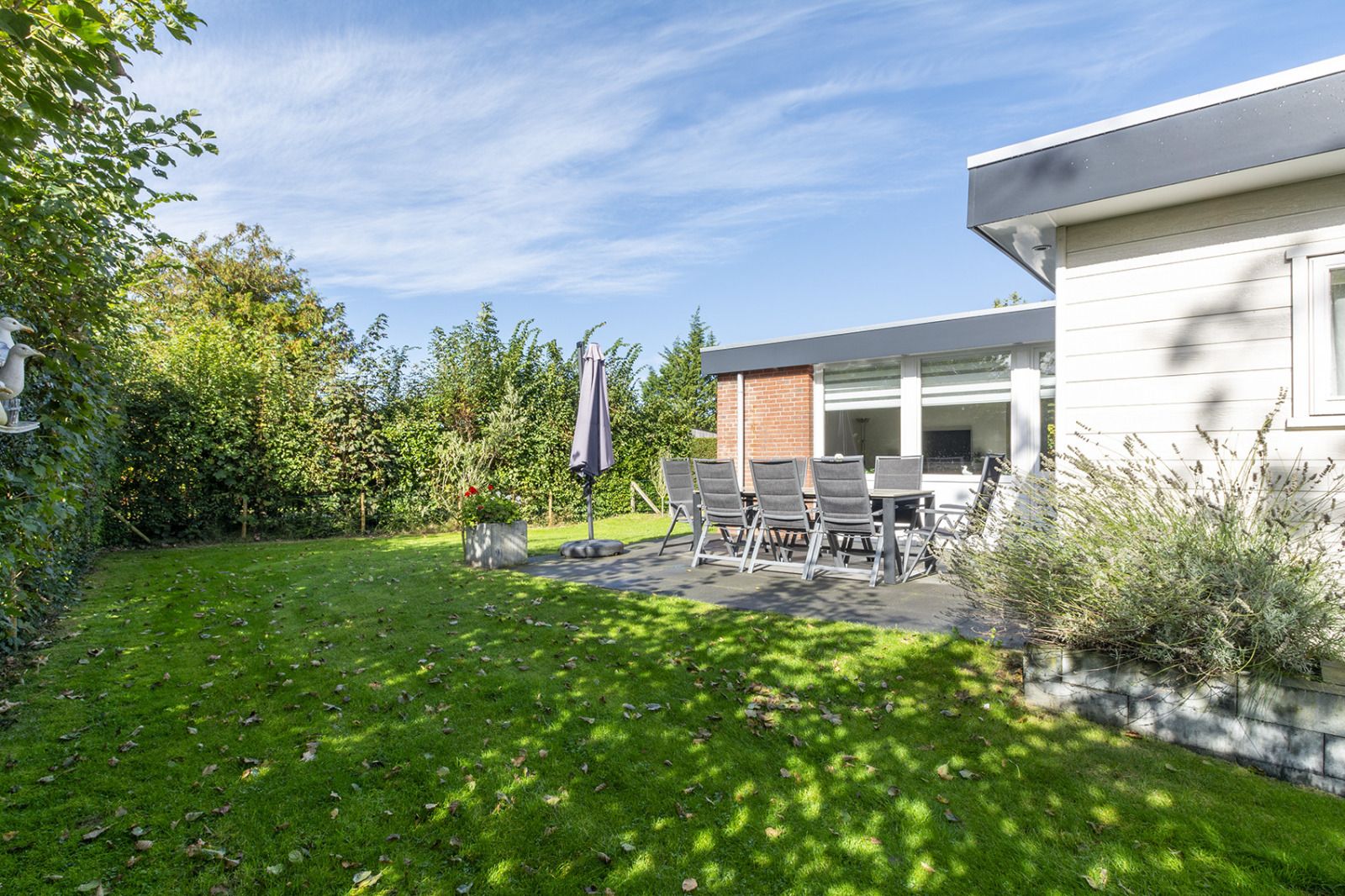 La maison dispose de quatre chambres spacieuses, de deux salles de bains et d'une salle de séjour lumineuse avec un coin salon confortable. Dans la cuisine ouverte, vous trouverez tous les équipements nécessaires pour cuisiner ensemble. Par les portes-fenêtres, vous accédez au grand jardin, où vous pouvez faire un barbecue, prendre un bain de soleil ou simplement vous détendre dans la verdure.