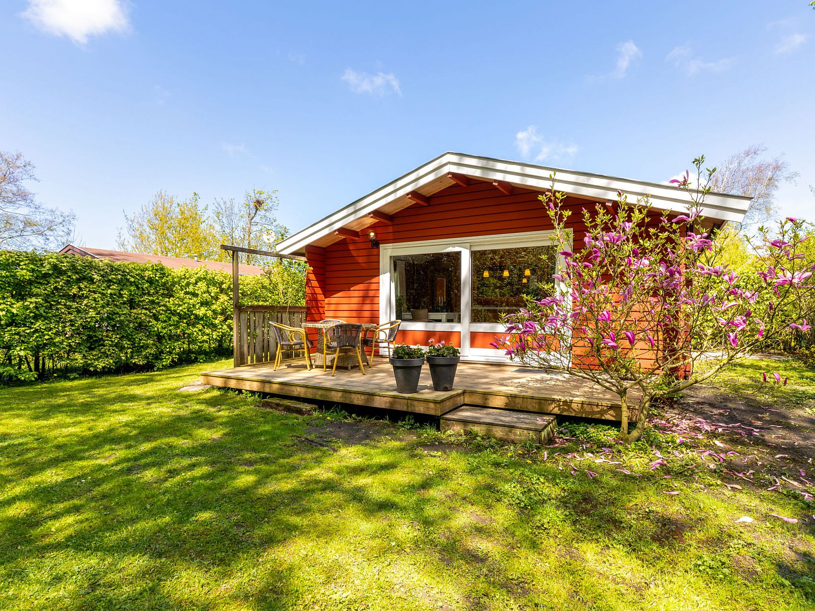 Petit lotissement de vacances "Rusthoeve", environné par les arbres. En-dehors de la localité, à 3 km de la mer, à 3 km de la plage. A usage privé: jardin. Terrasse, meubles de jardin, place de parking. Supermarché 1.4 km, centre commercial 7 km, arrêt de bus "Gerrit v. Der Sluisstraat" 170 m, gare ferroviaire "Schagen" 8 km, plage de sable "St. Maartenszee" 3 km. Attractions à proximité: Attractiepark De Goudvis 2 km, Dierenpark Blanckendaell 4 km, Fort Kijkduin 20 km, Marinemuseum Den Helder 23 km, Kaasmarkt Alkmaar 25 km, Zuiderzeemuseum 34 km. Veuillez noter: le propriétaire habite sur le même terrain. Piscine pour enfants de moins de 12 ans à 5,5 km.