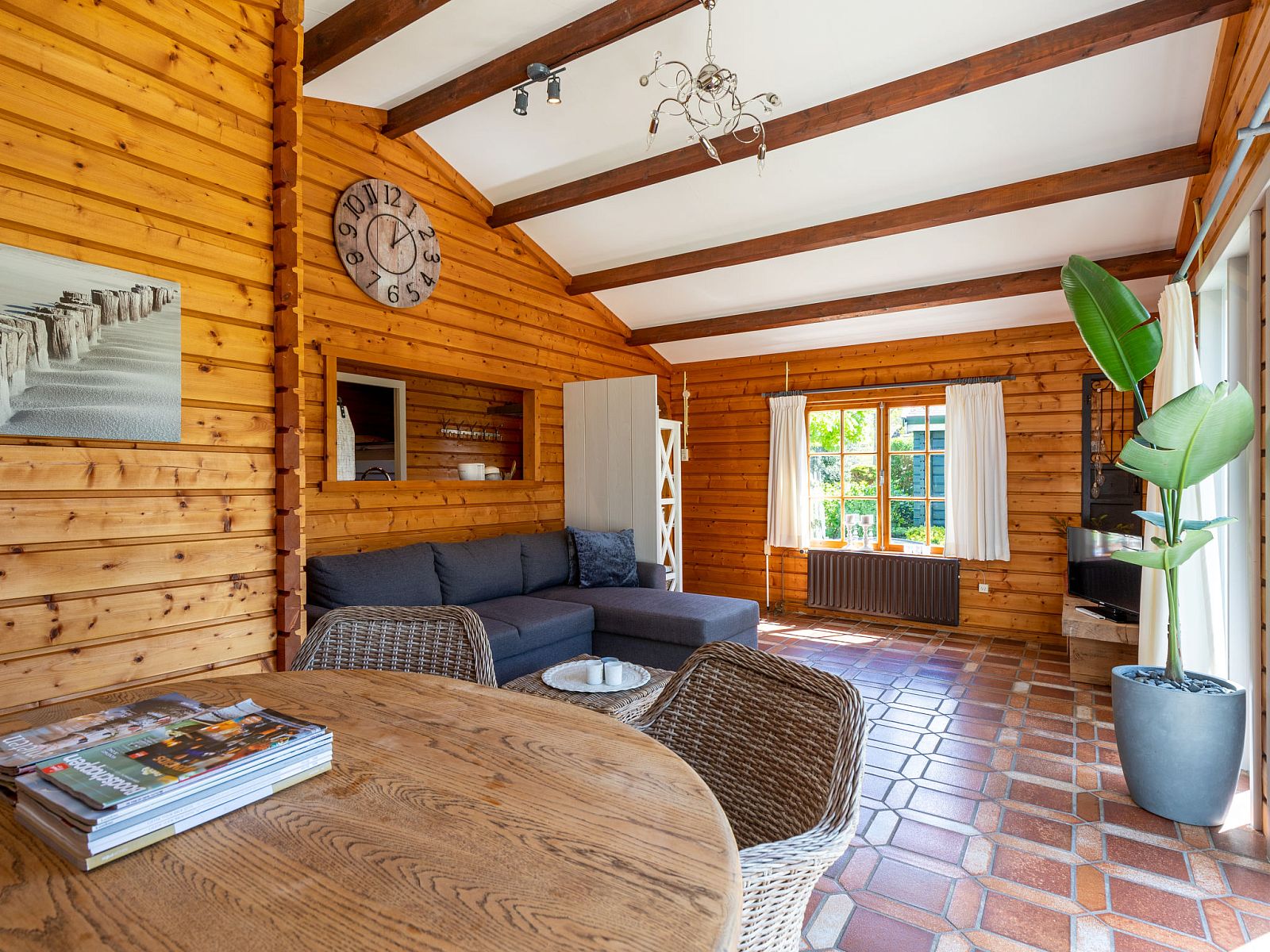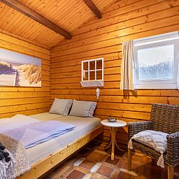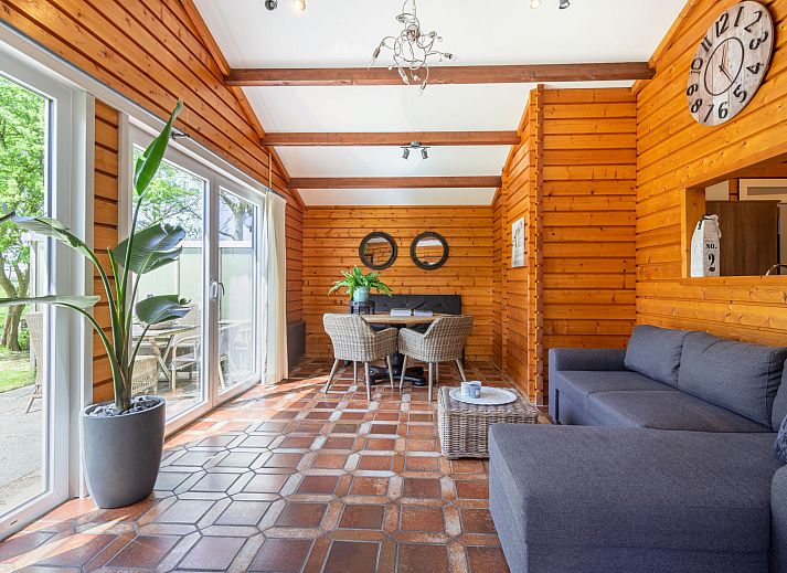 "Rusthoeve 28", chalet 3 pièces 60 m2. Aménagement fonctionnel et avec beaucoup de bois: séjour/salle à manger ouvert avec TV. Sortie sur le jardin. 1 chambre avec 1 grand-lit. 1 chambre avec 1 x 2 lits superposés. Cuisine ouverte (4 plaques de cuisson, lave-vaisselle, micro-ondes, cafetière électrique). Douche/WC. Chauffage, chauffage par le sol. Terrasse, jardin. Meubles de terrasse. A disposition: Internet (Connexion WIFI, gratuit). Veuillez noter: logement non-fumeur. Détecteur de fumée.