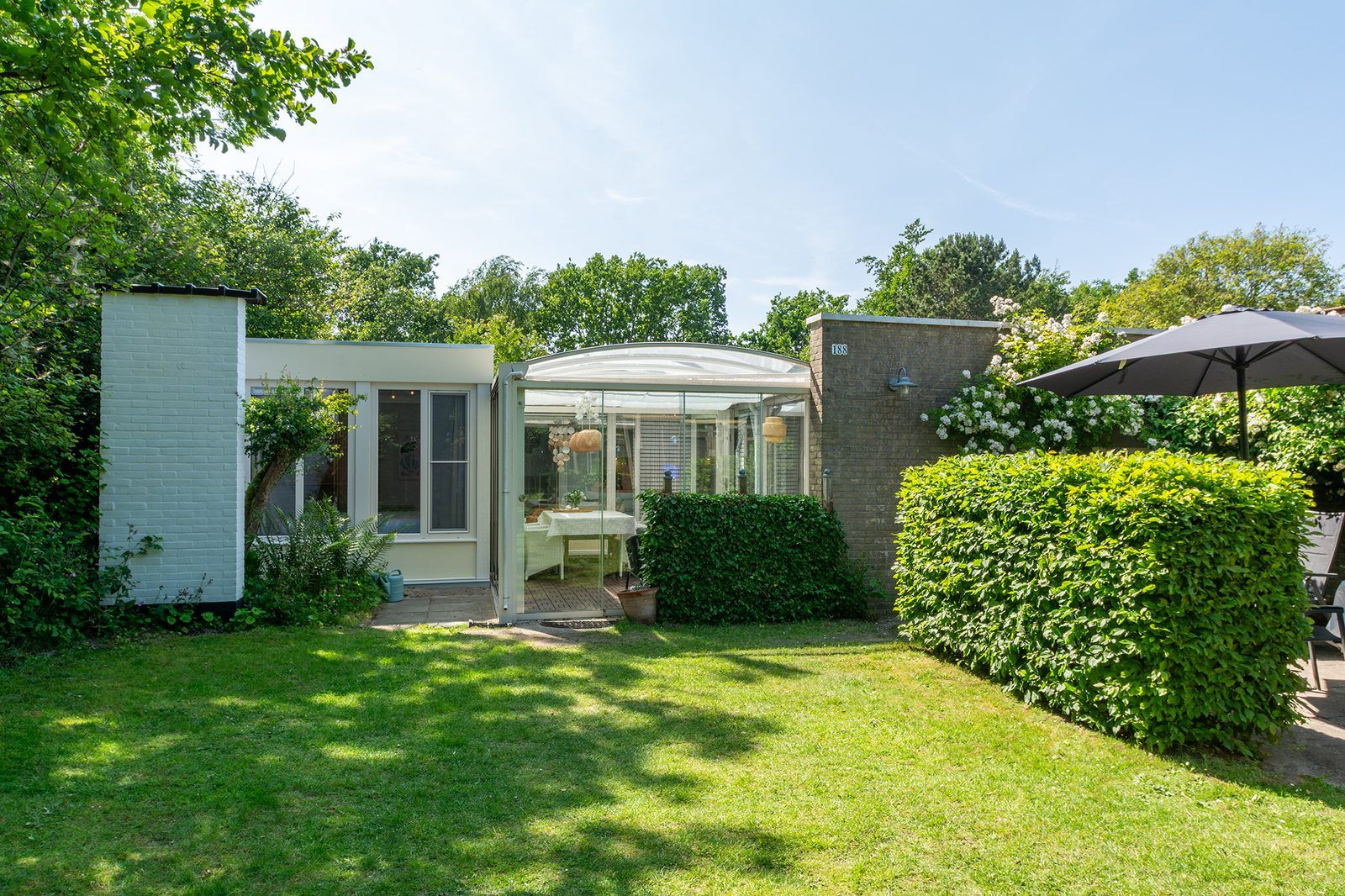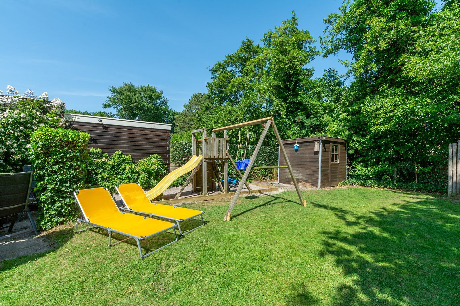 Dans le grand jardin verdoyant doté d'une agréable terrasse, il y a suffisamment d'espace pour que 7 personnes puissent manger, prendre le soleil et profiter pleinement. Le bungalow dispose d'une agréable véranda ensoleillée, où il fait bon se détendre même en dehors de la saison estivale !