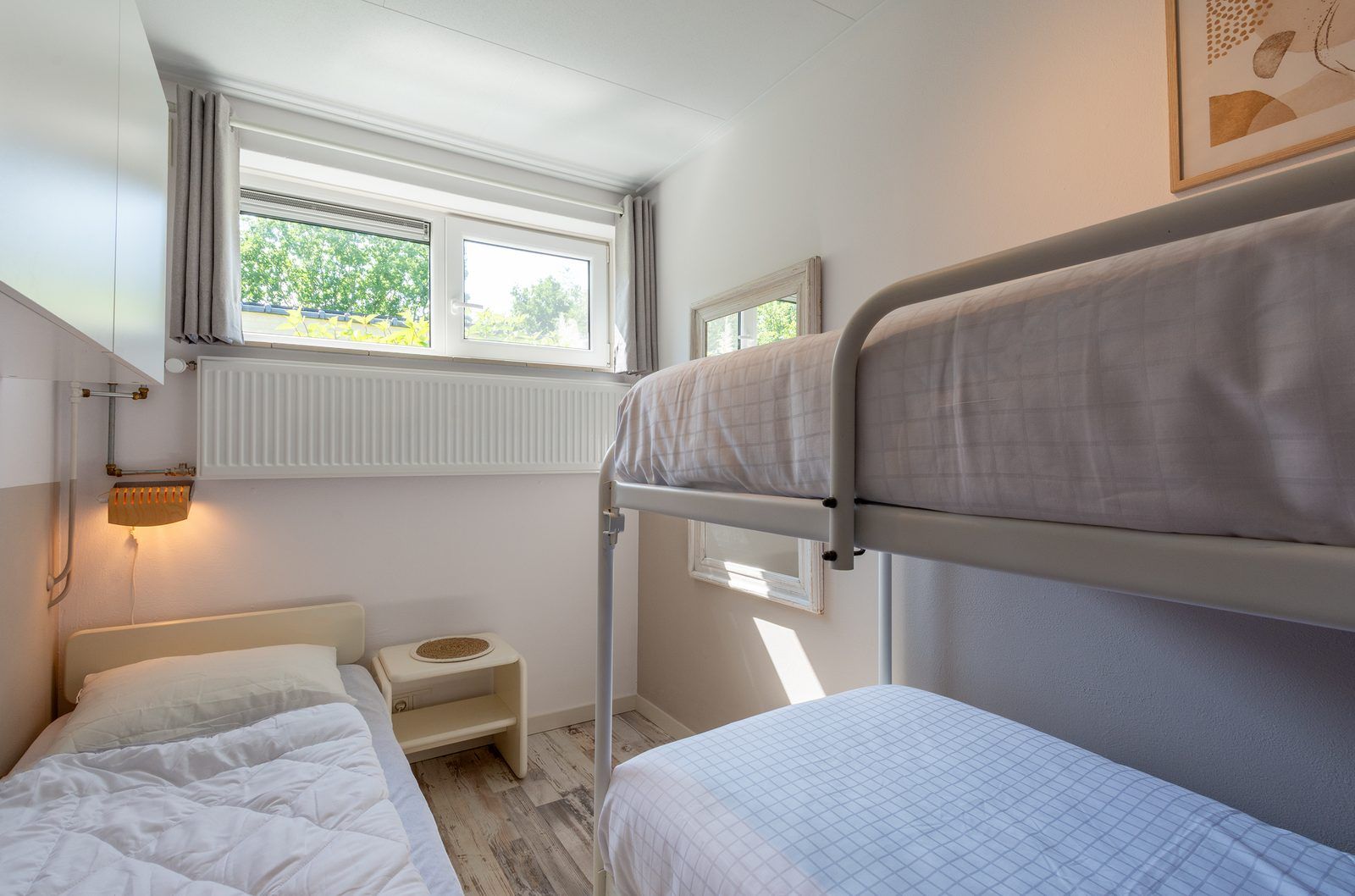 La nouvelle cuisine ouverte est entièrement équipée et le salon, à l'aménagement moderne, est très lumineux et spacieux. Le bungalow dispose de 3 chambres ; les deux plus grandes sont toutes deux équipées d'un lit double. La chambre des enfants comprend des lits superposés et un lit simple. La belle salle de bains est équipée d'une douche à l'italienne, d'un lavabo et de toilettes.