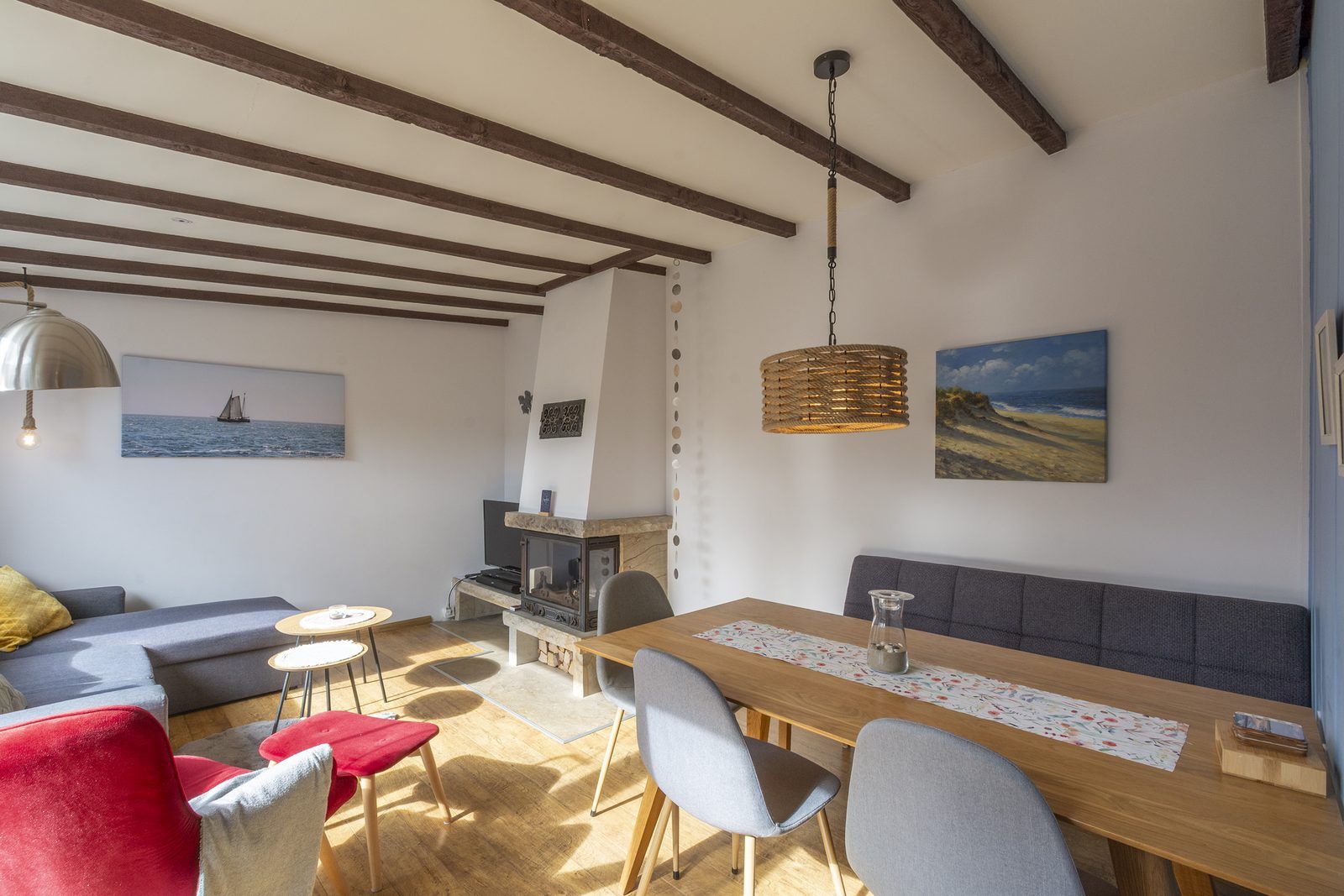La porte d'entrée donne sur le hall, puis sur le salon-salle à manger, un espace convivial et lumineux.