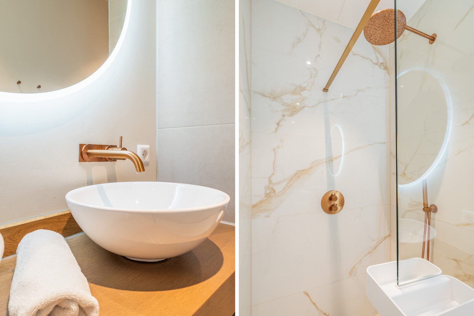 À l'intérieur, vous êtes entouré de luxe et d'ambiance. Le salon est spacieux et aménagé avec goût, et se prolonge par une cuisine entièrement équipée et haut de gamme. Vous accédez facilement à l'appartement par l'ascenseur, directement depuis le parking, ou par l'escalier.