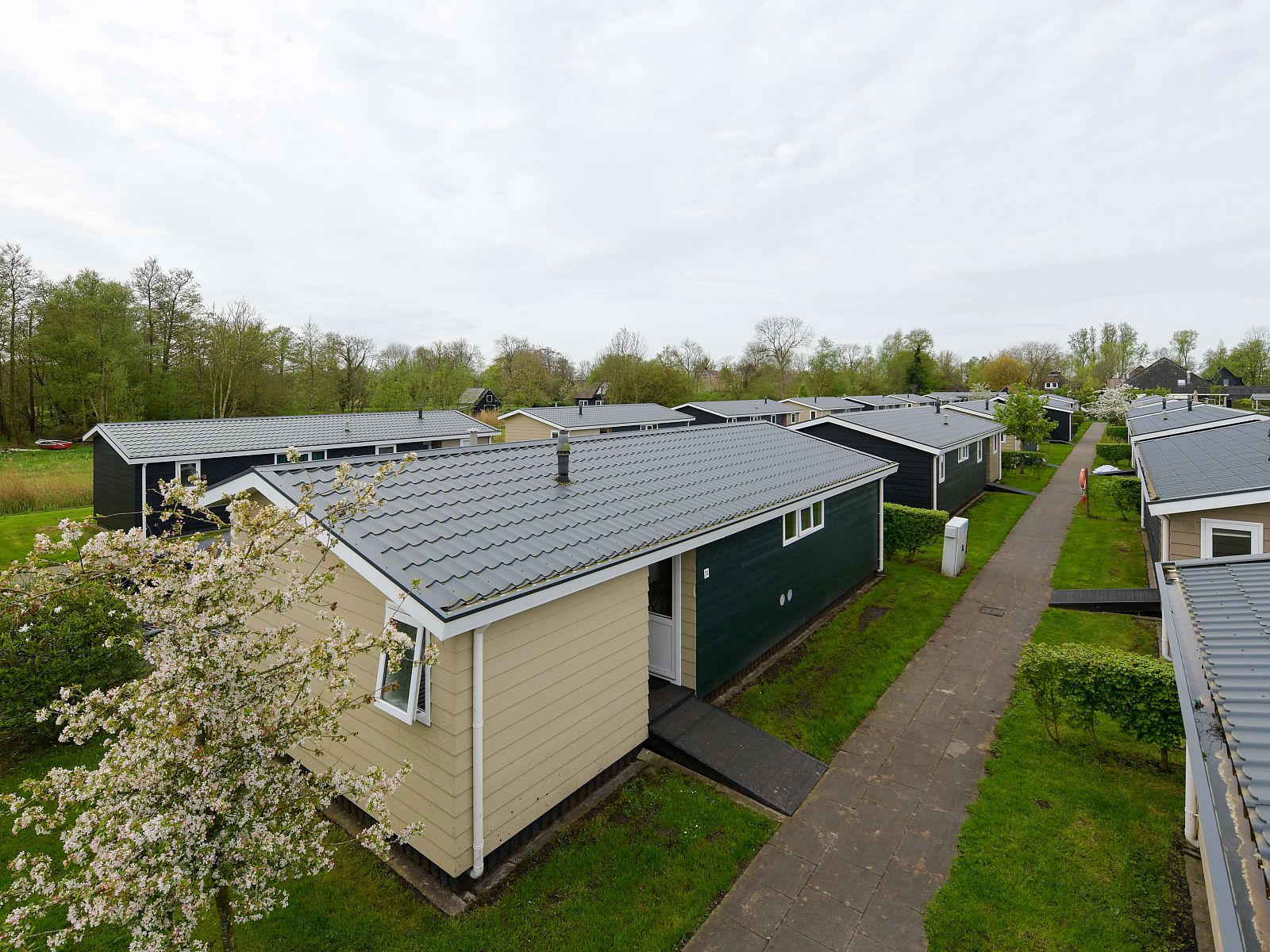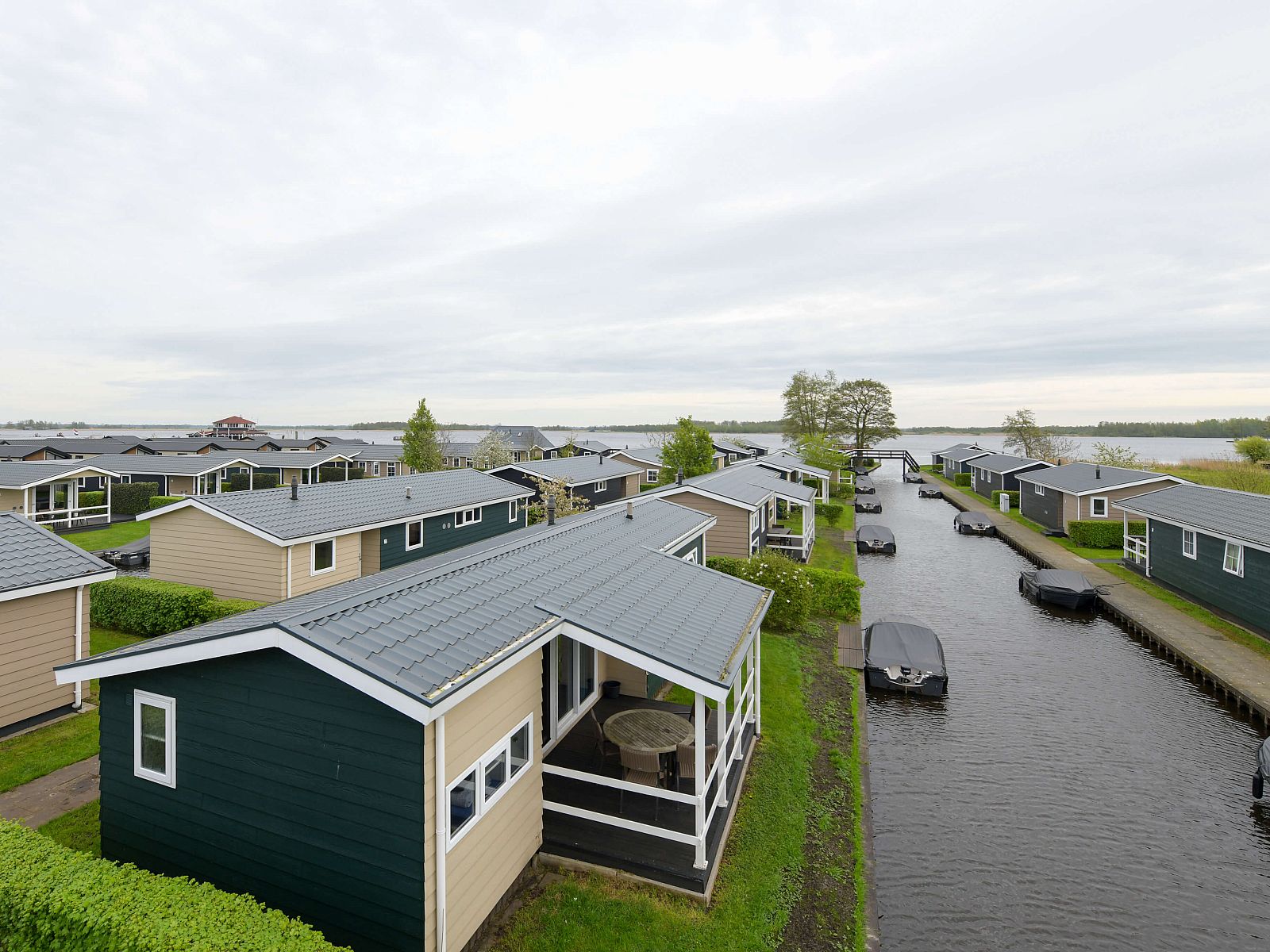 Vakantiepark Giethoorn bestaat uit drie schiereilanden, gesitueerd aan de oever van de Bovenwijde. Met de karakteristieke boogbruggen en grachten, vormt het park een klein waterdorp op zich. De kleuren van de lodges verschillen onderling, hetgeen een afwisselend beeld geeft. Een prachtige plek in het Venetië van het Noorden.