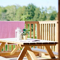 Ce Safaricottage pour 6 personnes est une tente de safari sur pattes ! Du haut de ses 2 mètres, vous avez une vue imprenable sur l'étang et la plage. Il est très agréable de séjourner dans ce Safari cottage avec 6 personnes.