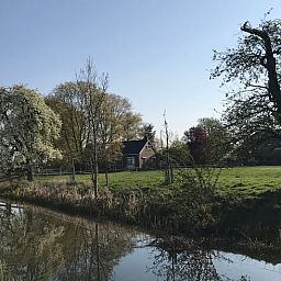 Ce gîte naturel est situé à environ trois kilomètres du village Utrechtois de Schalkwijk, dans la commune de Houten. L'accès à la propriété se fait par un petit chemin de ferme entre les prés. Le gîte rural est situé dans l'ancien champ de tir de Lunet aan de Snel (qui fait partie de la nouvelle ligne de flottaison néerlandaise). Le cours d'eau "De Snel" serpente autour de la maison. La maison peut accueillir jusqu'à six personnes. La chambre principale et la salle de bains se trouvent au rez-de-chaussée. La maison est entourée d'un beau jardin avec une agréable maison de jardin. À l'arrière, ce jardin borde une prairie où des moutons ou des veaux se promènent régulièrement. A l'avant, il y a un fossé avec une cascade et une échelle à poissons au niveau du pont d'accès. Un canoë est inclus dans la location de la maison. D'autres canoës peuvent être loués à la ferme des frères Uijtewaal, de l'autre côté de la route. Le gîte est non-fumeur et les animaux domestiques ne sont malheureusement pas les bienvenus, à l'exception des chiens d'assistance. La taxe de séjour dans la commune de Houten s'élève à 4 % du loyer et des frais supplémentaires hors TVA. Elle doit être payée sur place.
