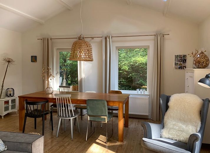 Nouveau à louer : bungalow particulièrement attrayant et spacieux sur un terrain privé avec beaucoup d'intimité, au milieu de la forêt. L'emplacement est fantastique. Autour de la maison se trouve un jardin boisé de près de 1000 m2. La vue est imprenable. On peut voir des écureuils, de nombreux oiseaux spéciaux et d'autres habitants de la forêt grimper et voltiger dans le jardin. Sous la véranda confortable, vous pouvez vous asseoir à l'ombre. Autour de la maison, il y a deux terrasses, de sorte que vous trouverez toujours un endroit agréable au soleil ou à l'abri du soleil. La maison elle-même est entièrement équipée. Le salon spacieux est décoré avec goût, il est très lumineux et offre des vues sur la forêt. Il y a un poêle à bois à l'extérieur. La maison est équipée d'un chauffage central et d'un chauffage par le sol. Depuis le salon, vous entrez dans la cuisine semi-ouverte. Elle est équipée d'une cuisinière à gaz, d'un lave-vaisselle, d'un réfrigérateur-congélateur, d'une machine à nespresso et d'une bouilloire. Le hall d'entrée spacieux donne accès à des toilettes séparées. Il y a une machine à laver et un sèche-linge. Il n'y a pas de télévision. Le Wifi est disponible.