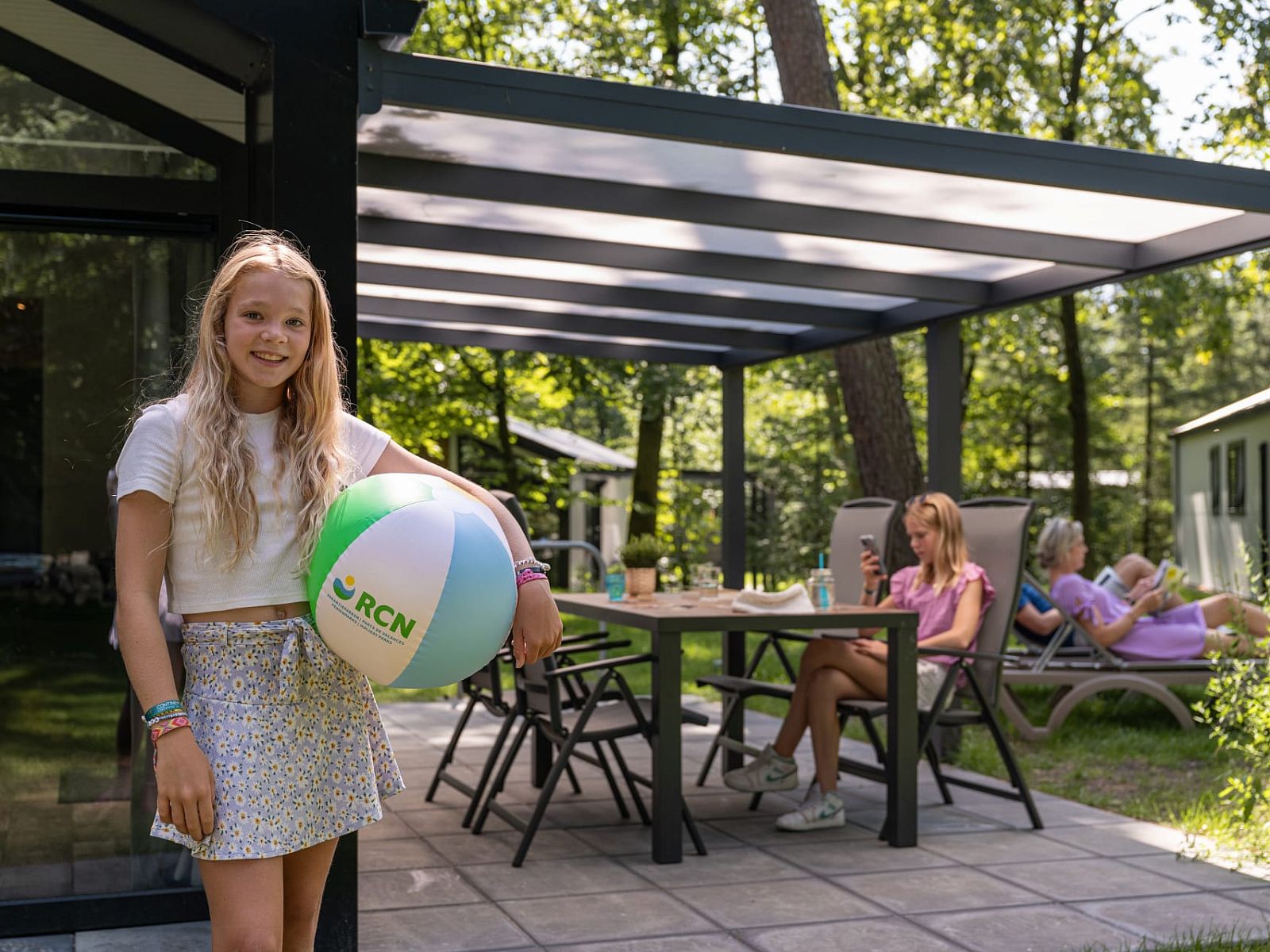Vous pouvez garer votre voiture au chalet. Il y a une terrasse partiellement couverte avec des meubles de terrasse modernes.