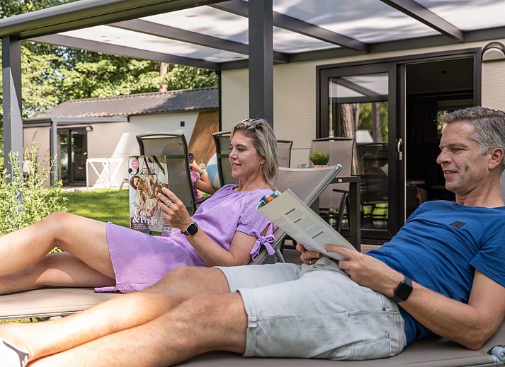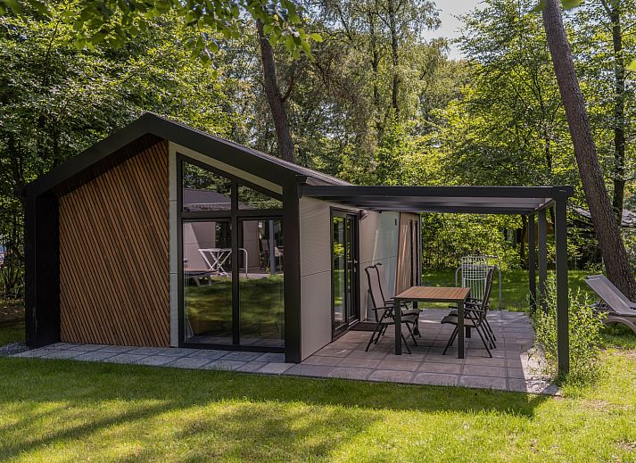 Ce nouveau chalet moderne (2023) peut accueillir 4 personnes et dispose d'une terrasse partiellement couverte avec des meubles de terrasse modernes. La chambre à coucher principale spacieuse dispose d'une grande armoire et est équipée de deux lits à ressorts swiss-sence.