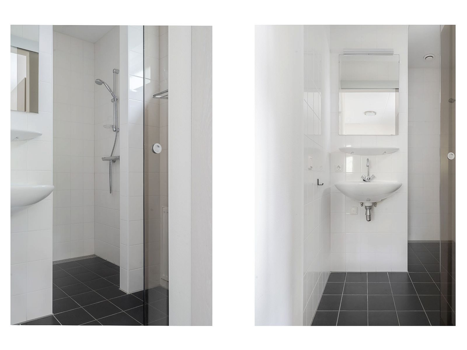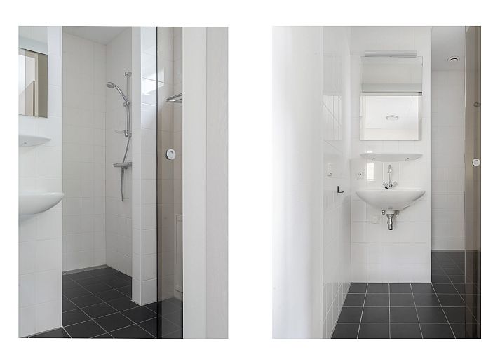 La chambre du rez-de-chaussée dispose d'une salle de bain privée avec lavabo et douche. Il y a également une deuxième salle de bain spacieuse à l'étage avec une douche à effet de pluie, une baignoire et des toilettes.