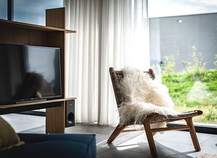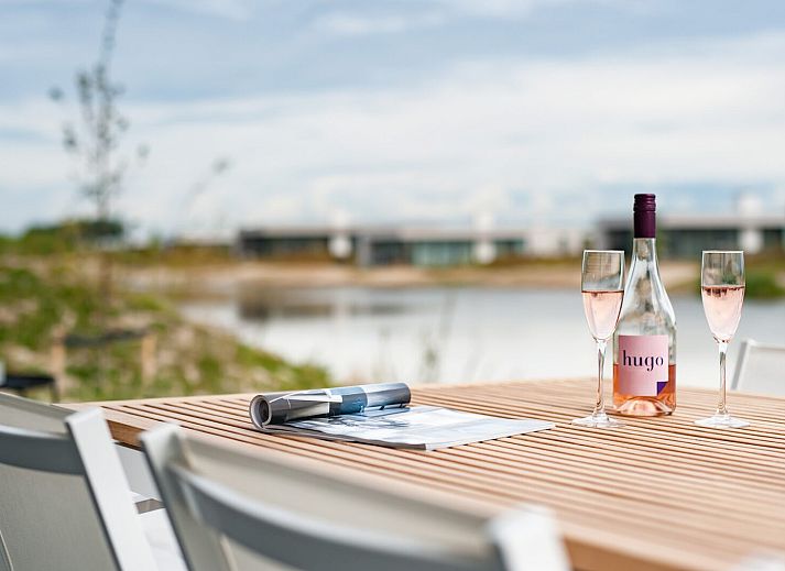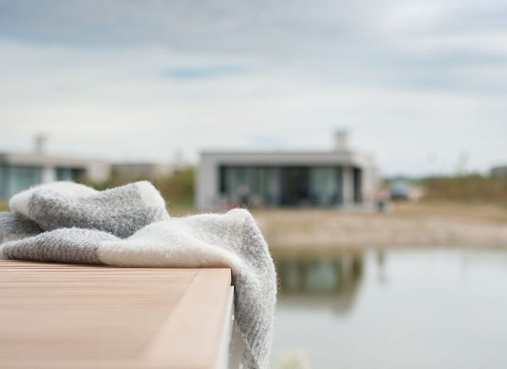 Le jardin borde un étang et est entouré de pentes, d'herbe de plage et de broussailles de dunes. La villa de vacances dispose d'un débarras intérieur avec, entre autres, une laveuse et un sèche-linge ainsi qu'un petit congélateur.Il y a une place de parking pour deux voitures par villa.