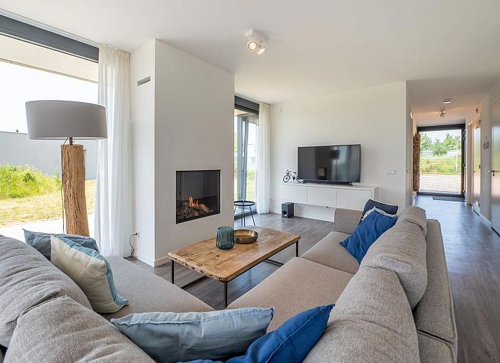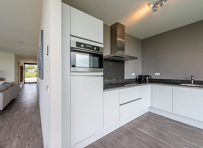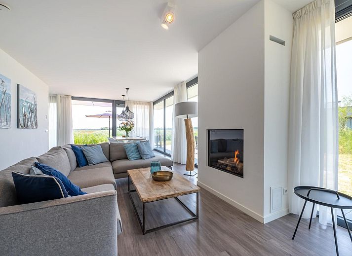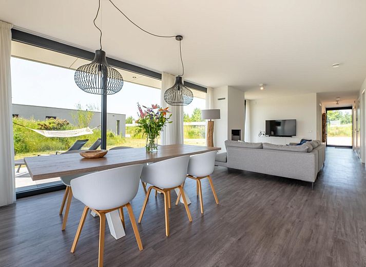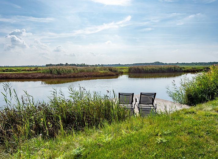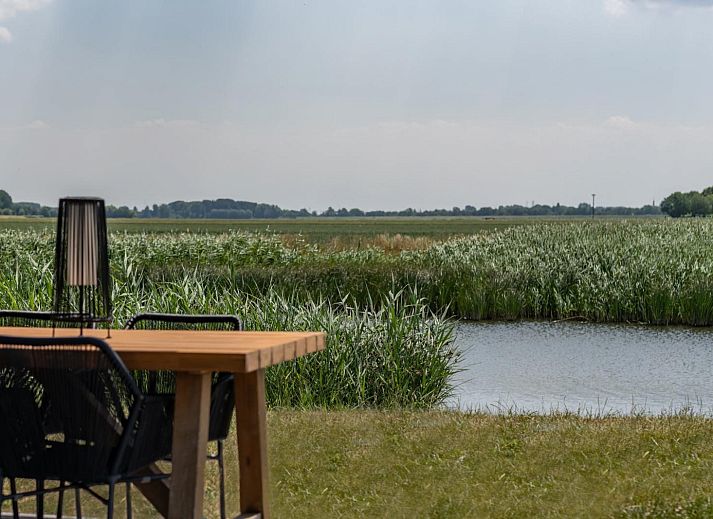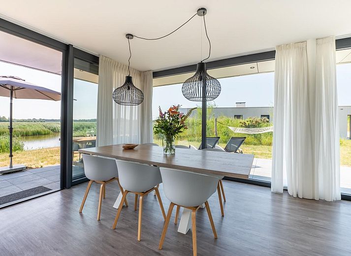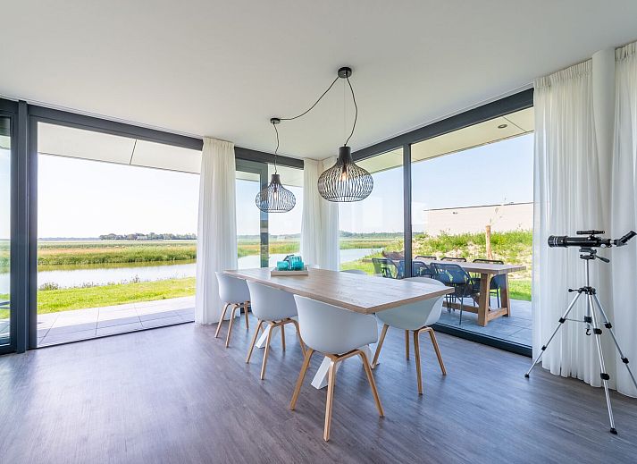L'atmosphère du salon est merveilleusement lumineuse et la façade vitrée sur toute la largeur du salon (fenêtres allant du sol au plafond) vous offre des vues panoramiques sur le vaste paysage des polders. L'ouverture des portes du jardin permet de relier le salon à la terrasse. Le salon dispose d'un coin salon confortable avec une cheminée à gaz atmosphérique et une télévision à écran plat. Une grande table à manger vous invite à prendre vos repas. La luxueuse cuisine ouverte est entièrement équipée d'appareils modernes de qualité, tels qu'un micro-ondes combiné, un lave-vaisselle et une machine Nespresso.