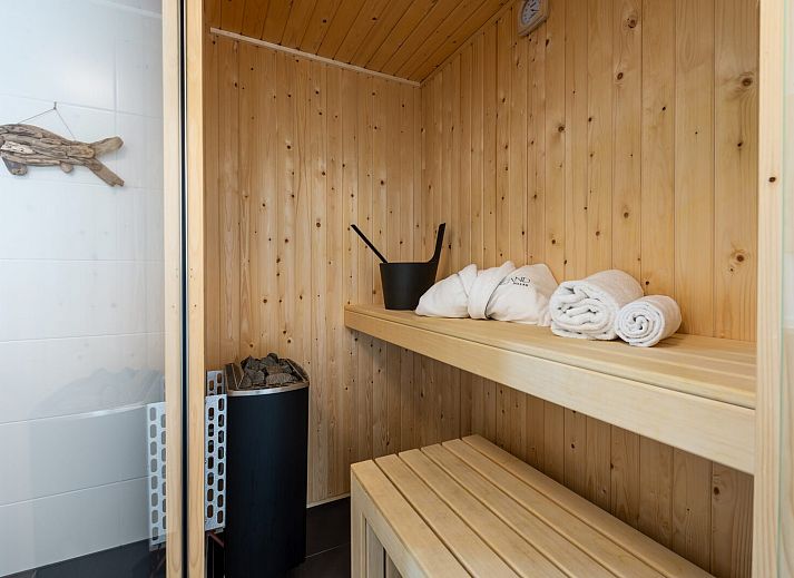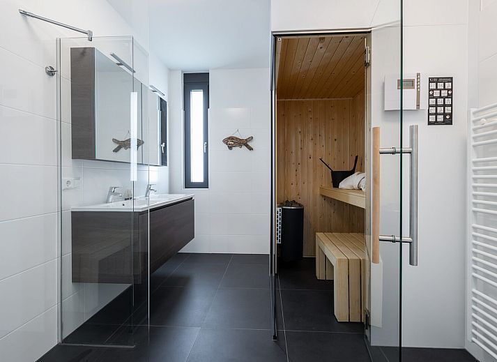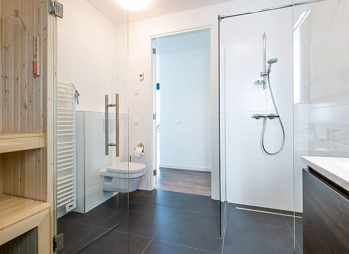 La villa dispose de trois chambres à coucher. Deux chambres sont équipées de deux lits simples et d'une télévision. La troisième chambre a deux éénpersoonsbedden. La chambre principale dispose d'une spacieuse salle de bains en suite, équipée d'une douche à l'italienne, de toilettes et d'un meuble de salle de bains. La deuxième salle de bains est équipée d'un luxueux sauna finlandais avec un mur de verre allant du sol au plafond. Vous pourrez vous y réchauffer après une longue promenade sur la plage. En outre, cette salle de bains est équipée d'une douche à l'italienne, de toilettes et d'un meuble de salle de bains.