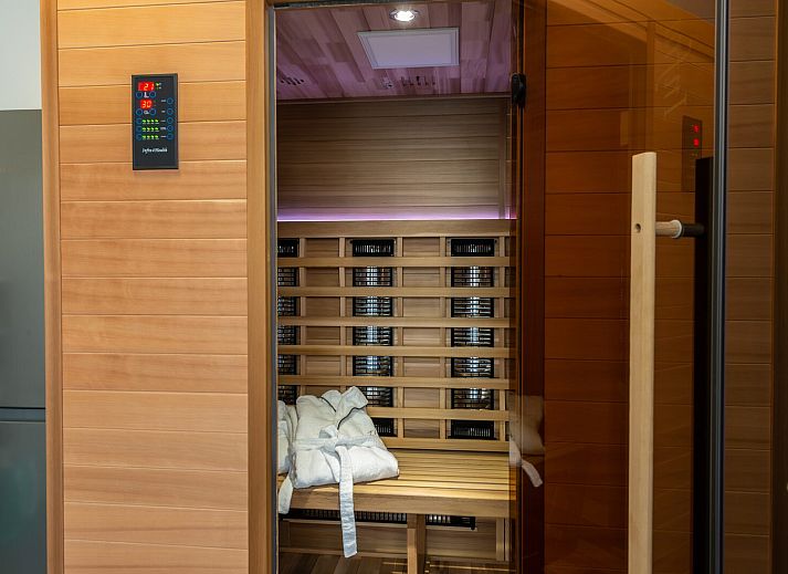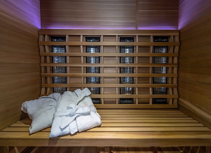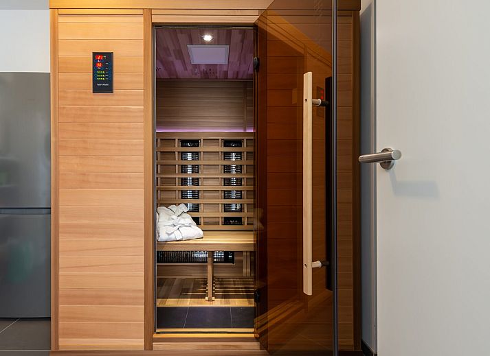 Cette villa dispose d'une salle de stockage intérieure avec un lave-linge, un sèche-linge etun réfrigérateur-congélateur. Dans la salle de stockage, vous trouverez également un sauna infrarouge compact, où vous pourrez vous réchauffer après une longue promenade sur la plage. Chaque villa dispose d'un lit d'enfant et d'une chaise haute en standard.