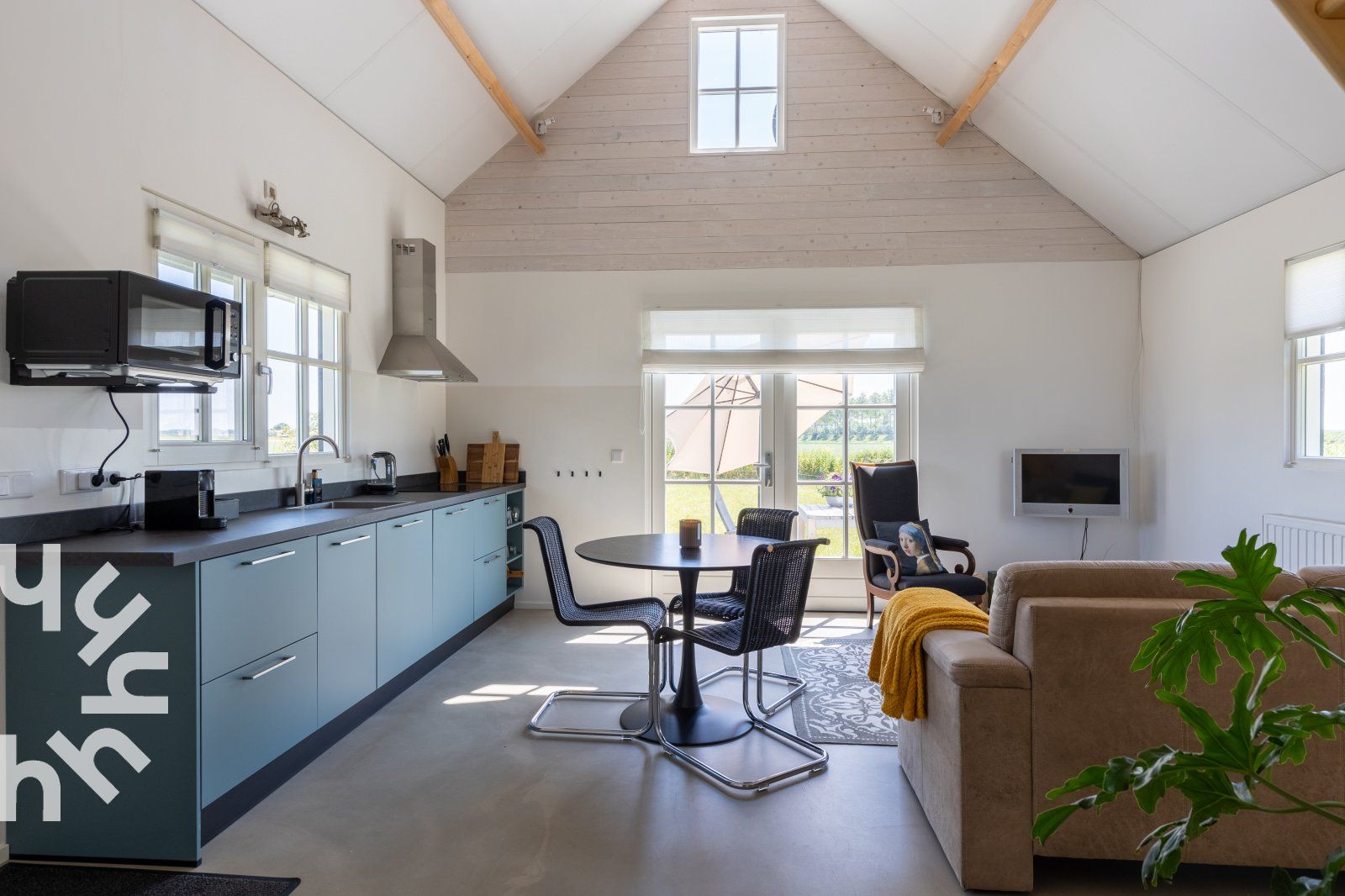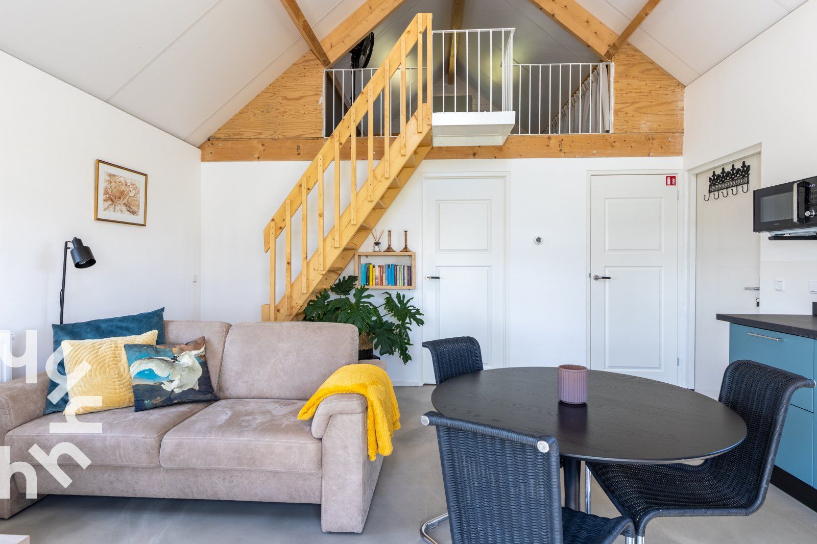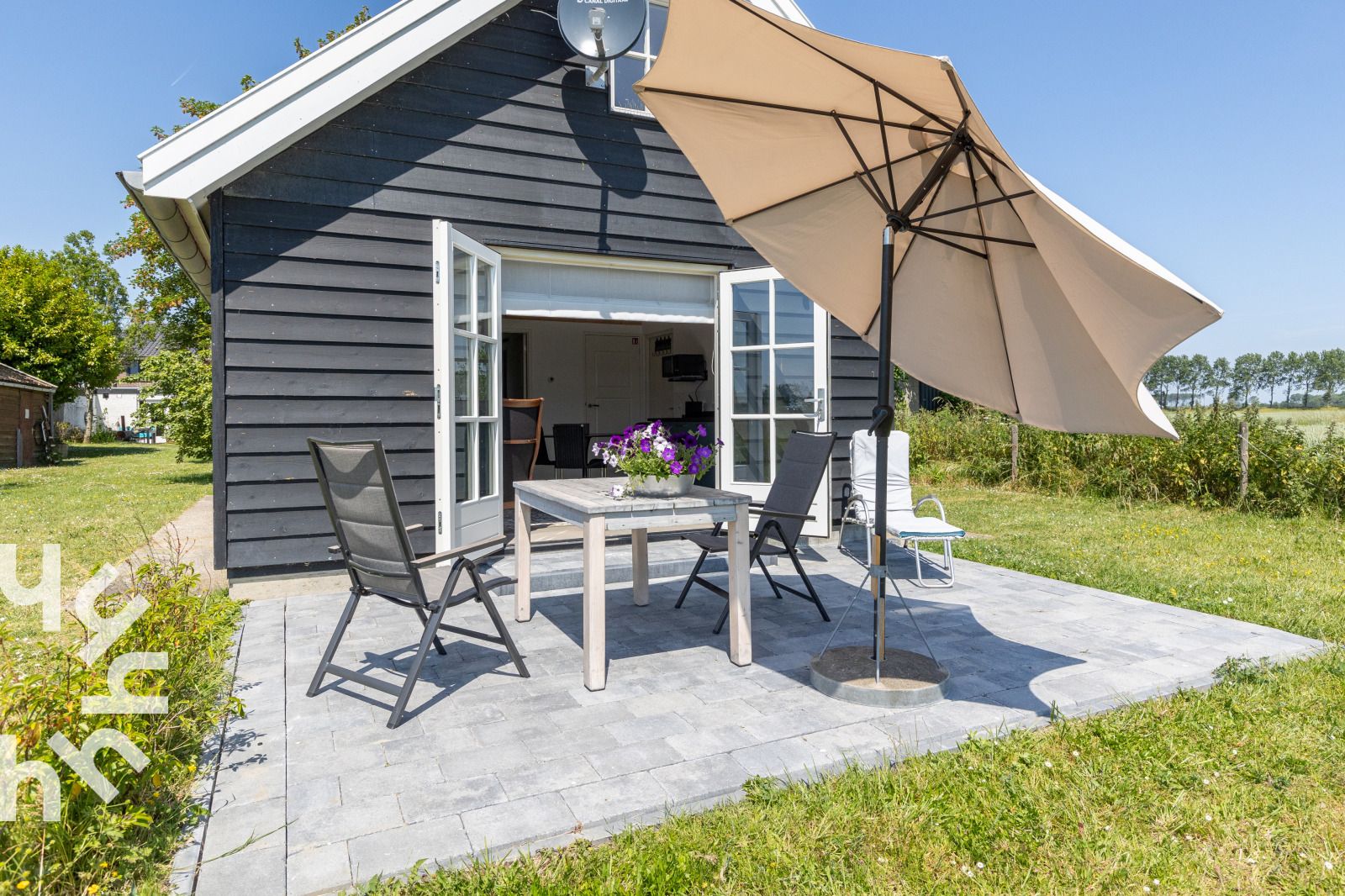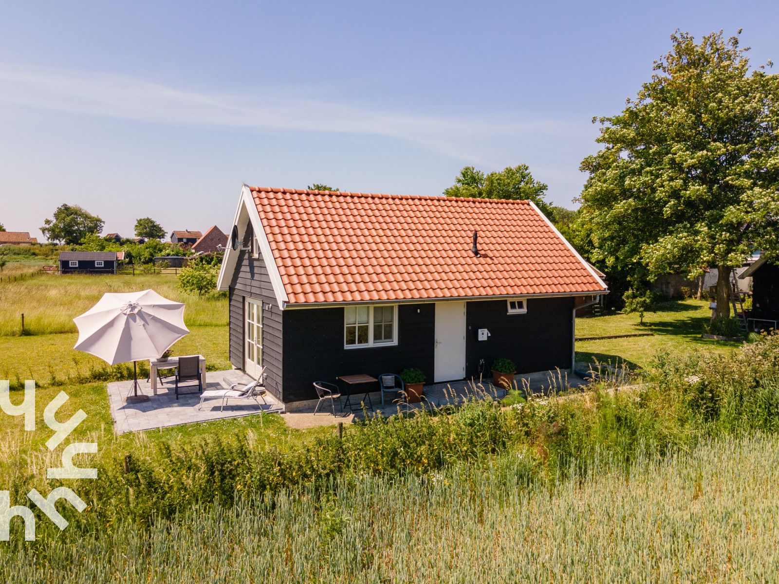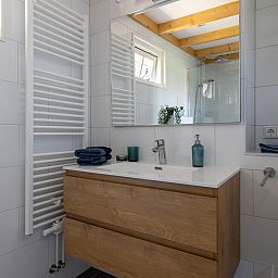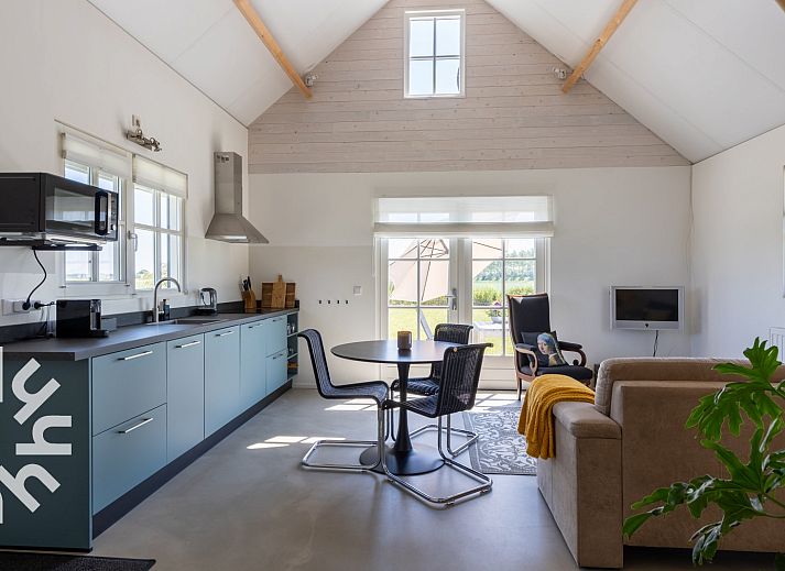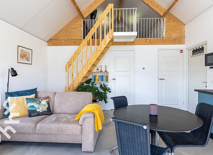 La maison de vacances est meublée avec goût et équipée de tout le confort. La maison convient à des groupes de trois personnes maximum ou à des familles avec un enfant. Un coin salon confortable avec un canapé et une table ronde avec trois chaises. La cuisine est entièrement équipée et comprend une plaque de cuisson à induction, un réfrigérateur-congélateur, un lave-vaisselle, une machine Nespresso et une bouilloire.La chambre du rez-de-chaussée dispose d'un lit double dont les lits sont faits à l'arrivée et d'une armoire pour ranger vos vêtements. Cette maison de vacances dispose d'une chambre supplémentaire dans l'espace ouvert du premier étage, accessible par l'escalier ouvert. Une troisième personne peut y séjourner sur demande. En raison des escaliers et de la barrière, le grenier ne convient pas aux jeunes enfants.Le jardin est un endroit idéal pour se détendre. Le jardin est un endroit idéal pour se détendre et se réveiller avec les sons de la nature. Sur le côté, un siège confortable et à l'avant de la maison, une table de jardin avec deux chaises.