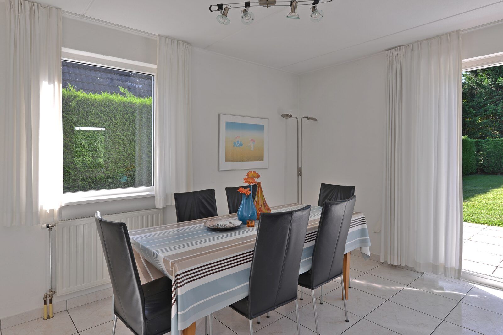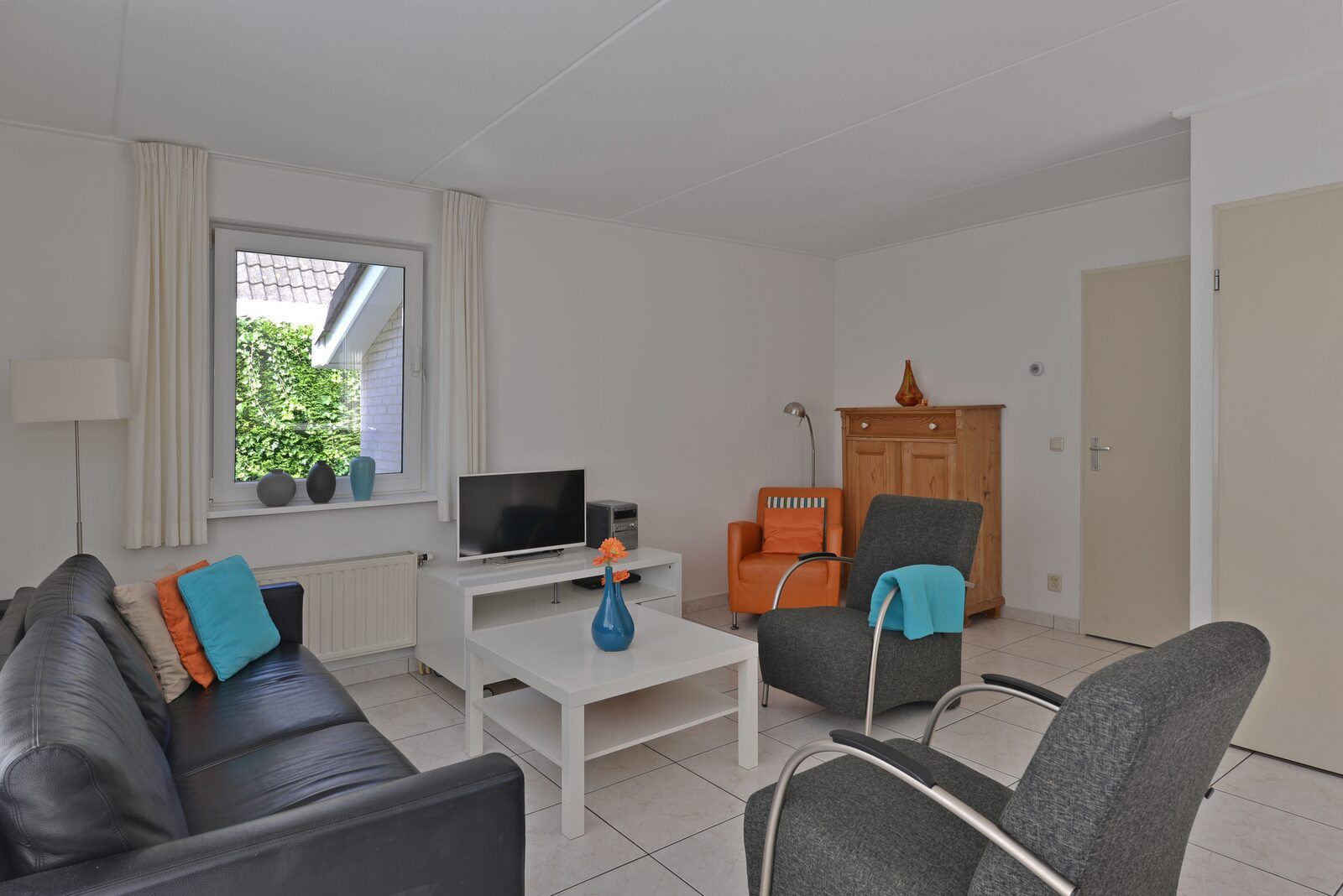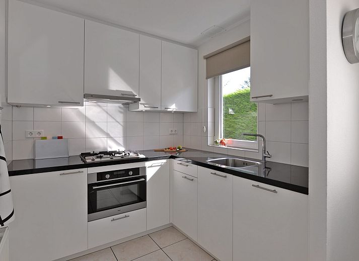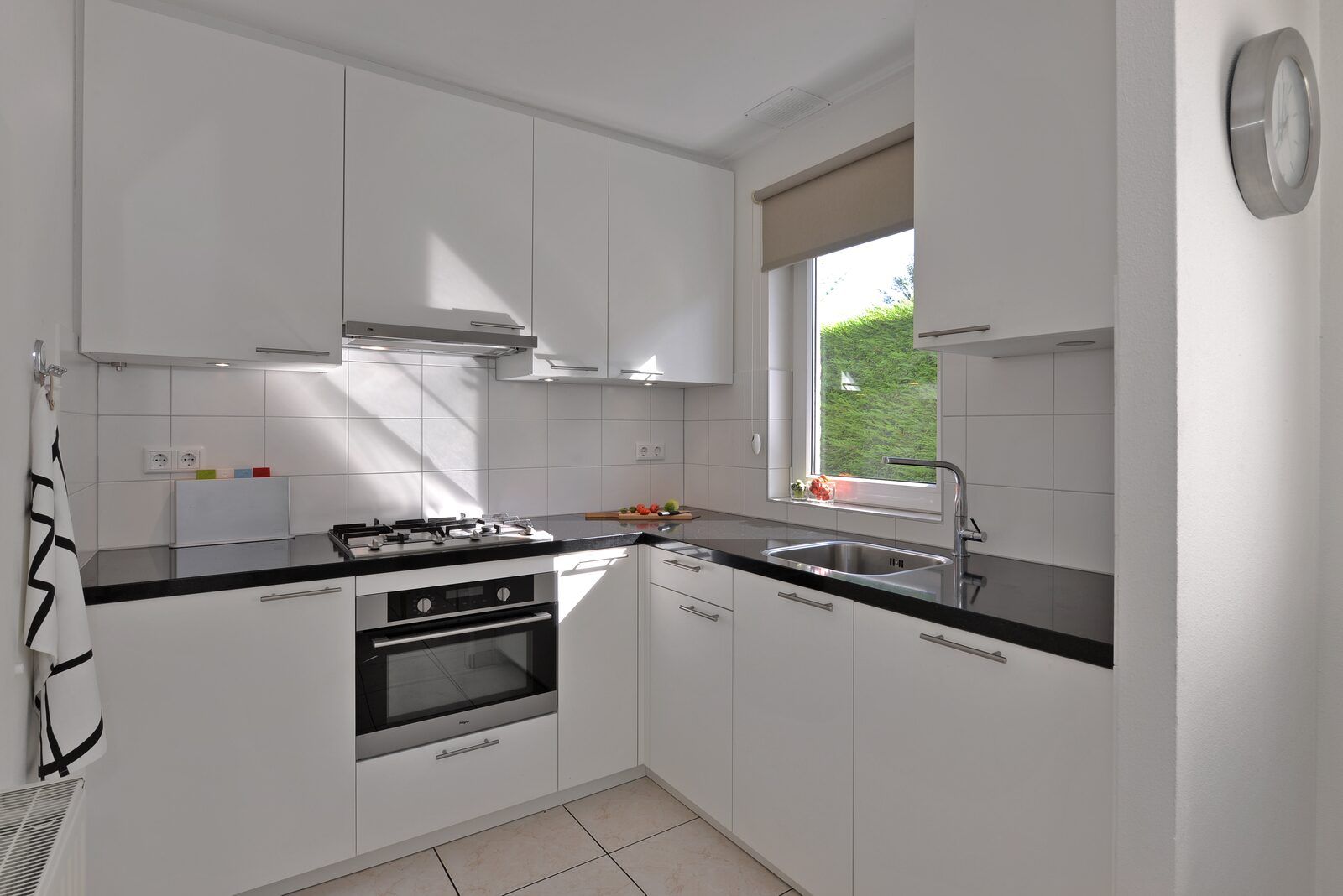 Le salon avec cuisine ouverte est charmant et lumineux et est orienté vers le sud. Une porte coulissante avec store donne accès au jardin protégé à la végétation dense et à la terrasse avec des meubles de jardin confortables et deux chaises longues. Dans le salon, vous trouverez un coin salon confortable avec une télévision à écran plat. La luxueuse cuisine ouverte est entièrement équipée d'appareils modernes de qualité. Entre autres, vous trouverez un micro-ondes combiné et un lave-vaisselle.