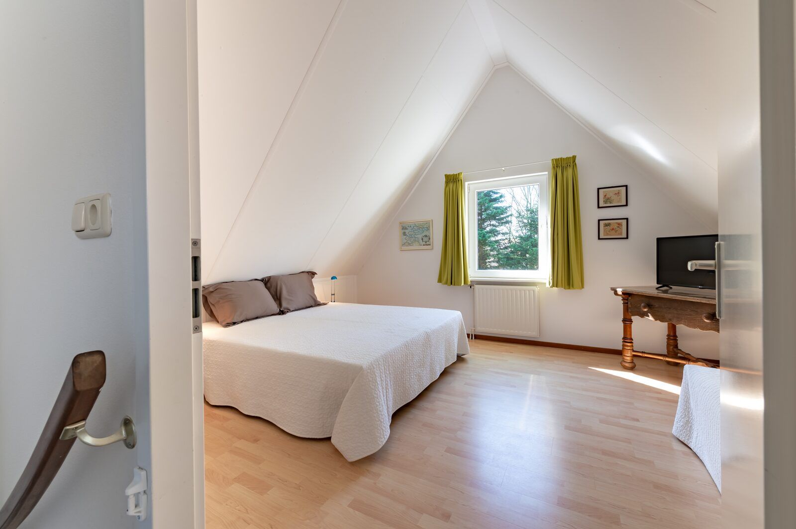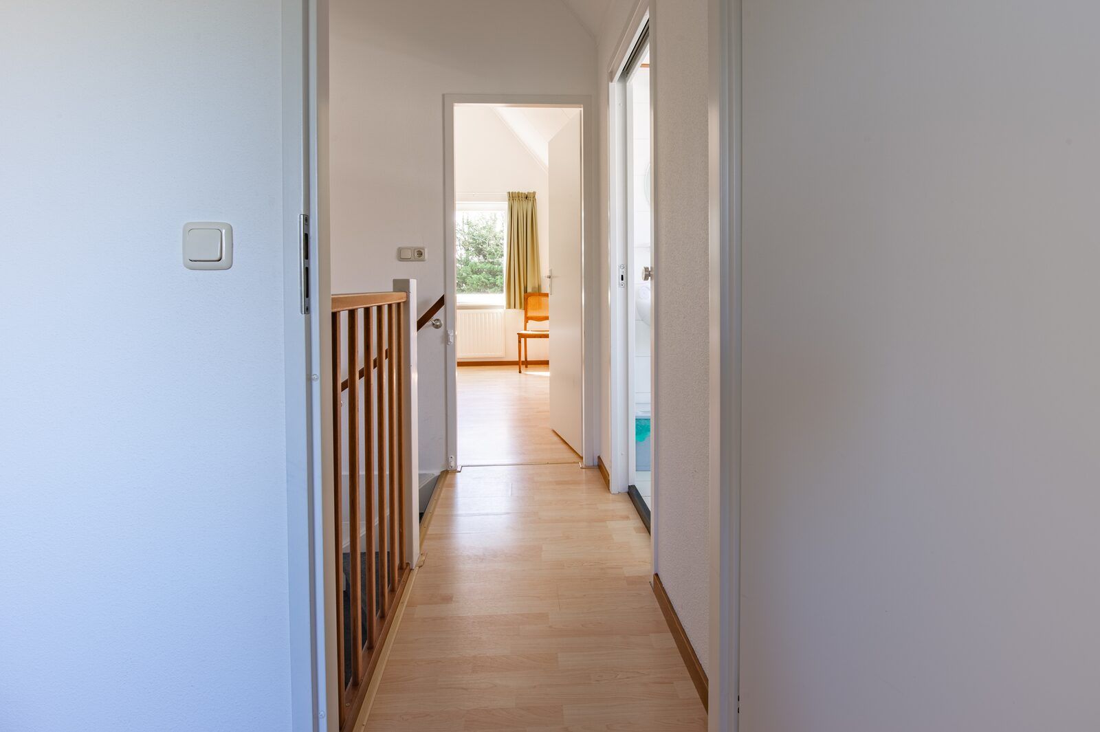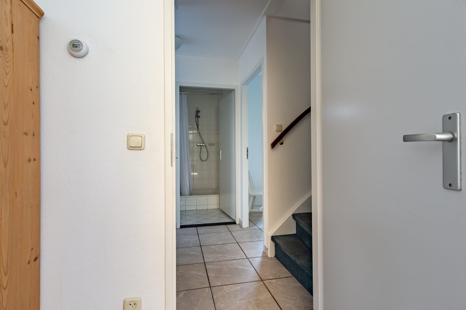 Au rez-de-chaussée, il y a une chambre avec un lit jumeau et une salle de bains avec un double lavabo et une douche. Il y a des toilettes pour les invités dans le couloir. A l'étage se trouvent deux chambres spacieuses et une salle de bain. Une chambre a un lit jumeau et une chambre a trois lits simples. La salle de bain est équipée d'une baignoire avec douche, d'un lavabo et de toilettes. Une machine à laver et un sèche-linge sont à votre disposition dans le cellier. Devant la maison se trouvent deux places de parking.