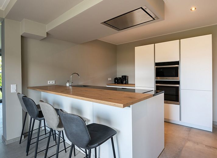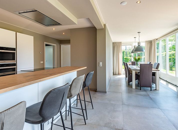 Depuis le hall, vous avez accès au spacieux salon avec de grandes portes coulissantes et des portes-fenêtres donnant sur la terrasse ensoleillée orientée au sud. Le salon dispose de deux coins salon confortables avec une Smart TV et une cheminée. La nouvelle cuisine avec îlot de cuisson est équipée de tous les appareils de luxe possibles, tels qu'un lave-vaisselle, un four avec fonction vapeur et grill, un réfrigérateur-congélateur, un four à micro-ondes combiné, une plaque vitrocéramique et une machine à café Nespresso. Profitez d'une boisson au bar de l'îlot de cuisson tout en cuisinant. Depuis la spacieuse cuisine habitable, vous avez un accès direct au joli jardin par les portes-fenêtres.