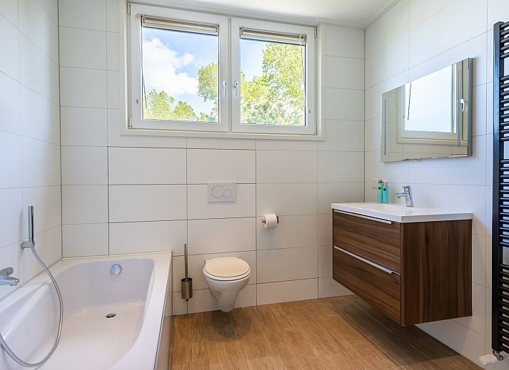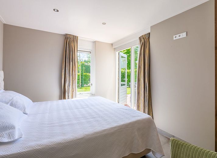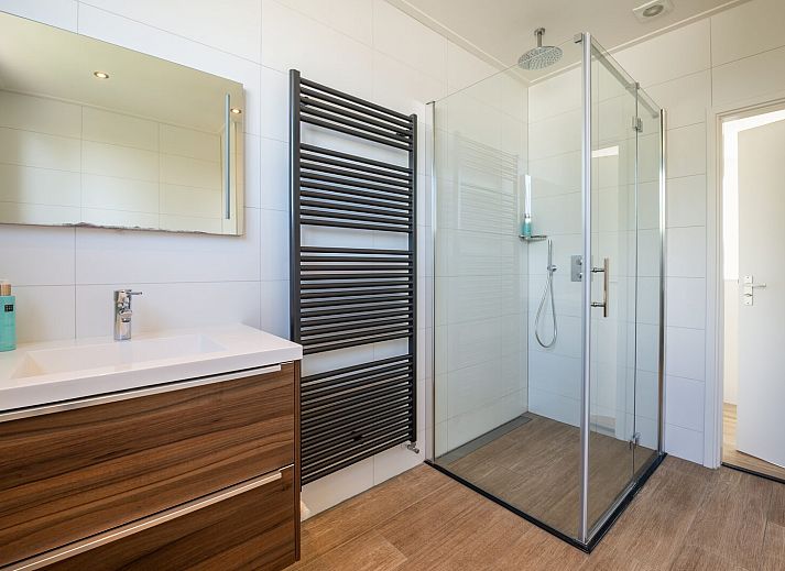 Au rez-de-chaussée se trouvent 2 chambres à coucher. La chambre principale dispose d'un lit double. L'autre chambre dispose de deux lits simples. Toutes les chambres ont des lits à sommier suisse. La salle de bain luxueuse offre une véritable expérience spa. Vous pouvez vous détendre dans le sauna luxueux et spacieux pour 4 personnes avec éclairage dirigé dans des couleurs réglables. Il y a également une douche de pluie au plafond, une douche à main et des toilettes séparées.