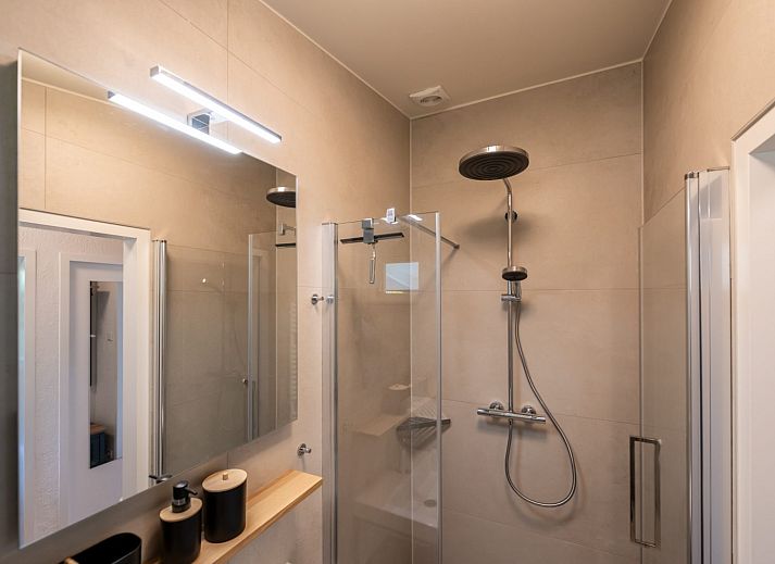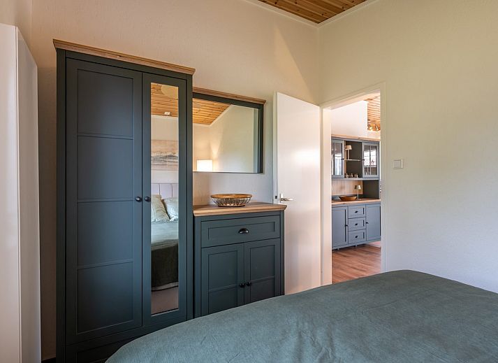Ce bungalow est très soigné et moderne. L'entrée donne accès à deux chambres. L'une d'entre elles dispose d'un grand lit double. La deuxième chambre est équipée de lits superposés de 140 x 200 cm de large. La salle de bains moderne est équipée d'une douche à l'italienne, d'un lavabo et de toilettes.
