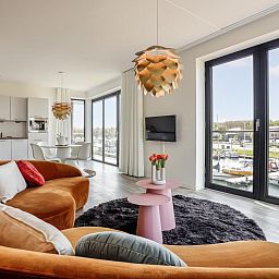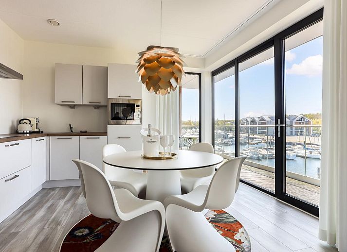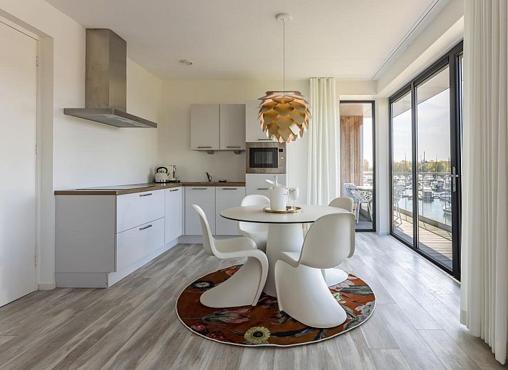 Appartement design luxueusement aménagé au premier étage avec vue sur le port de Kamperland. Le salon lumineux avec de grandes fenêtres et une cuisine ouverte donne sur un balcon d'où l'on peut admirer l'eau et les bateaux. Avec deux chambres confortables, une salle de bain moderne et un emplacement de parking privé pour deux voitures, vous pourrez profiter ici de tout le calme à un emplacement privilégié au bord du port.