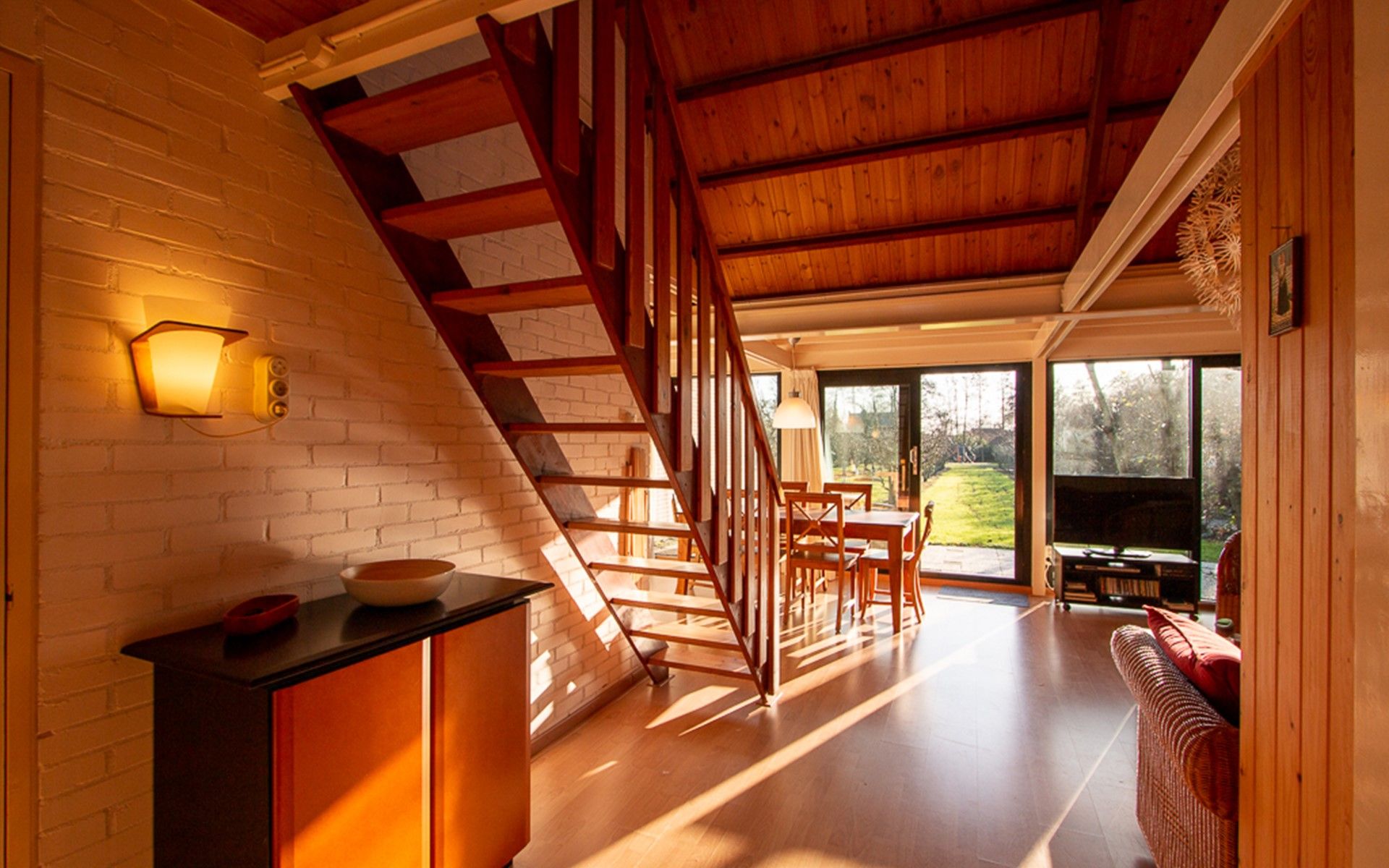 La maison est décorée avec goût et dispose d'un confortable canapé d'angle, d'une cuisine ouverte avec lave-vaisselle et d'un authentique poêle à pignon. Ce dernier permet de chauffer l'ensemble de la maison en un rien de temps. Depuis le salon, vous avez une vue sur le magnifique verger. Au rez-de-chaussée se trouvent également une chambre double et la salle de bains avec douche à l'italienne et toilettes. Au premier étage, il y a deux autres chambres doubles, dont une avec un lavabo.