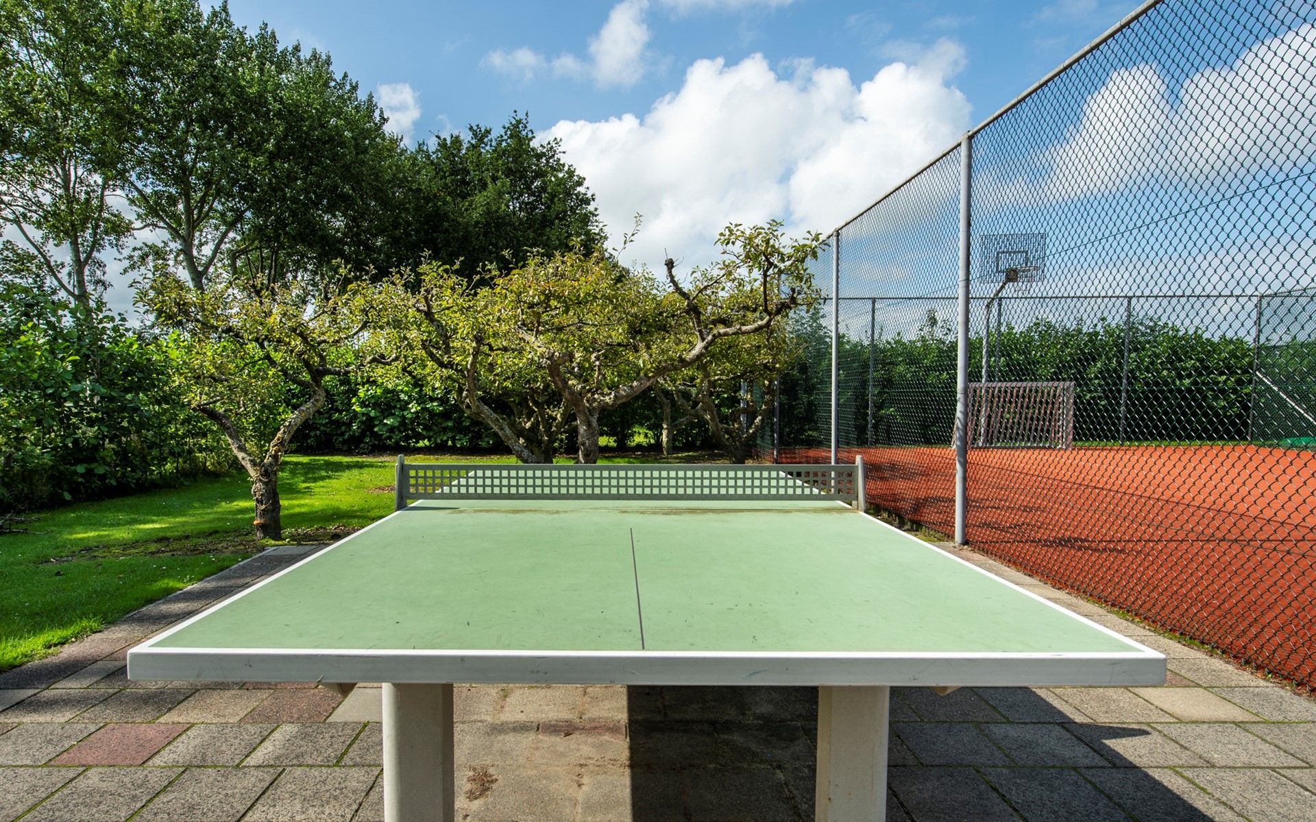 Depuis le salon, on accède à la terrasse par les portes coulissantes. Vous pourrez y profiter du soleil toute la journée, cueillir des fruits dans le verger avec les enfants et passer de belles soirées d'été en famille. Depuis la terrasse, vous avez une vue sur l'aire de jeux où vos enfants peuvent s'amuser sous votre surveillance. Au parc, vous pourrez faire une partie de tennis ou de ping-pong ou vous rafraîchir dans la piscine.