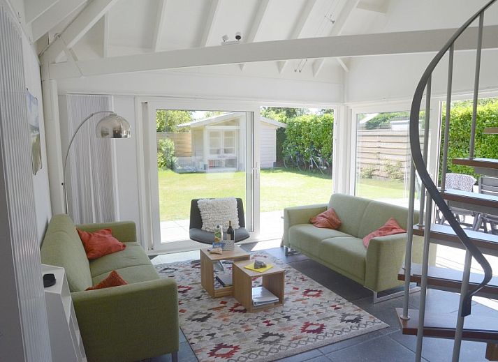 Le salon dispose d'un coin salon confortable avec une télévision intelligente (câble). Depuis le salon, on accède à la terrasse ensoleillée par deux portes coulissantes. Un mobilier de jardin complet est disponible ainsi qu'un grand parasol.