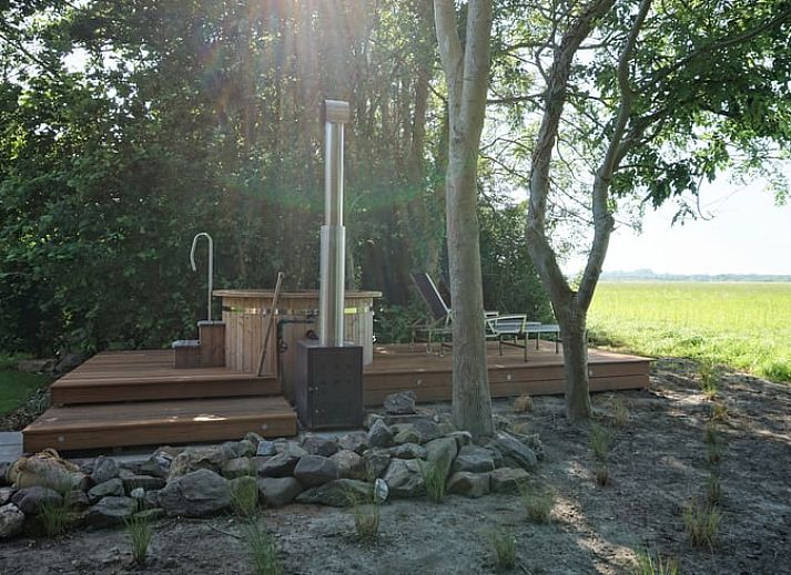En bordure de notre domaine se trouve ce magnifique pavillon de bien-être avec bain à remous privé. Depuis ce bain à remous chauffé au bois, vous avez une vue imprenable sur le vaste paysage des polders. Vous pourrez y admirer le coucher du soleil en sirotant une boisson ou vous prélasser sur l'une des chaises longues. Le lodge est entièrement équipé, notamment d'une cuisine avec de nombreux ustensiles de cuisine et d'un lave-vaisselle. Il y a deux chambres à coucher : la grande chambre dispose d'un lit double avec de grandes armoires de chaque côté et la petite chambre dispose de deux lits simples avec des armoires murales au-dessus des lits. La salle de bains est équipée d'un lavabo et d'une douche à l'italienne. Les toilettes sont séparées. Le lodge est situé sur un site spacieux avec beaucoup d'intimité. Vous pouvez ainsi chauffer le jacuzzi 1 à 2 fois. Nous pouvons livrer plus de bois moyennant un supplément.