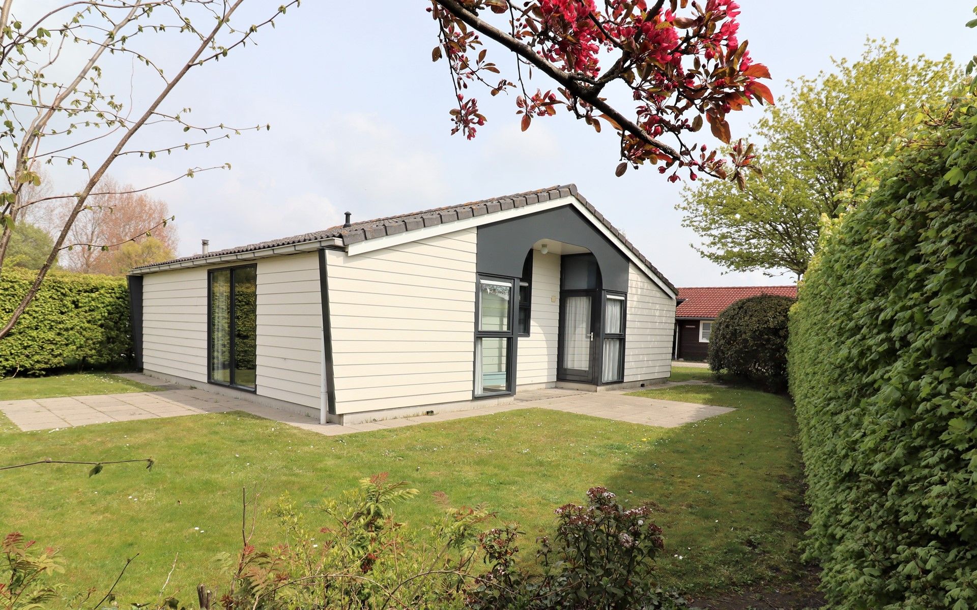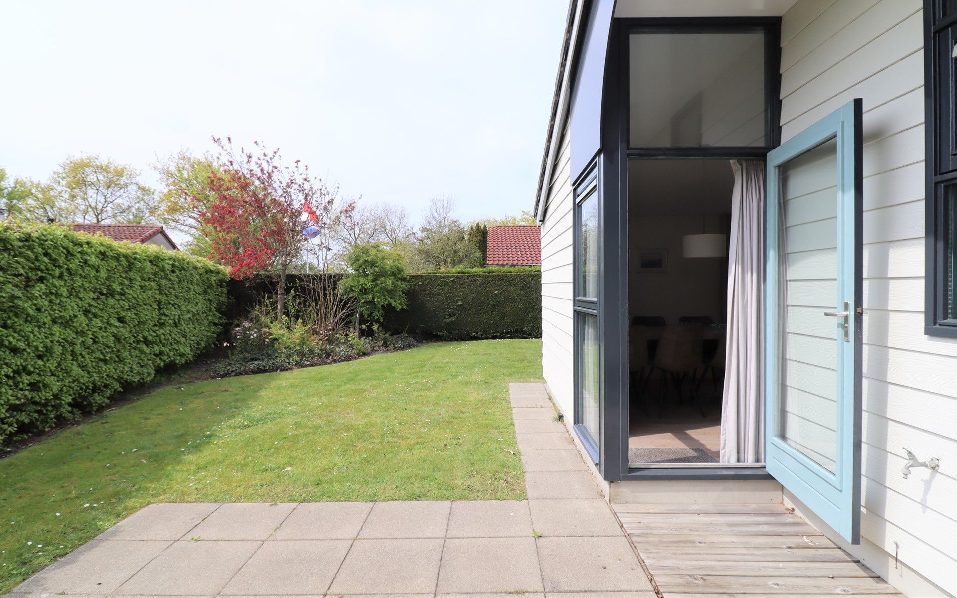 La maison dispose d'un grand jardin avec une terrasse meublée où vous pourrez profiter de l'intimité et vous détendre. Les enfants peuvent également jouer dans le jardin. Un parking est disponible au bungalow.