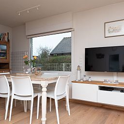 La cuisine ouverte est entièrement équipée, avec notamment un lave-vaisselle, une cafetière à filtre, une cafetière Senseo, un four à micro-ondes combiné, une bouilloire et un réfrigérateur avec compartiment congélateur. Vous pouvez ainsi préparer facilement de délicieux repas et profiter de vacances sans souci.