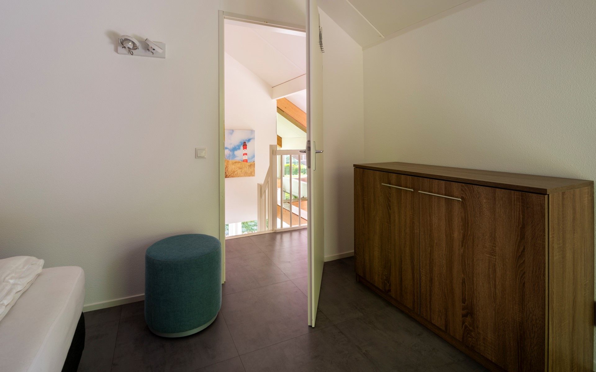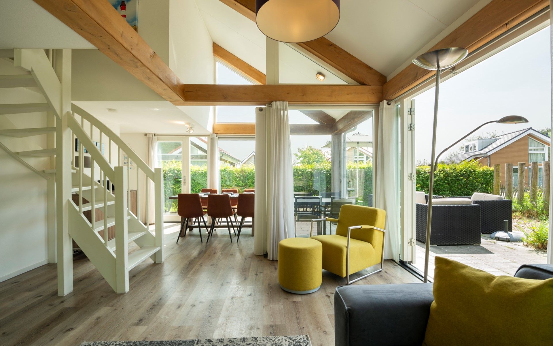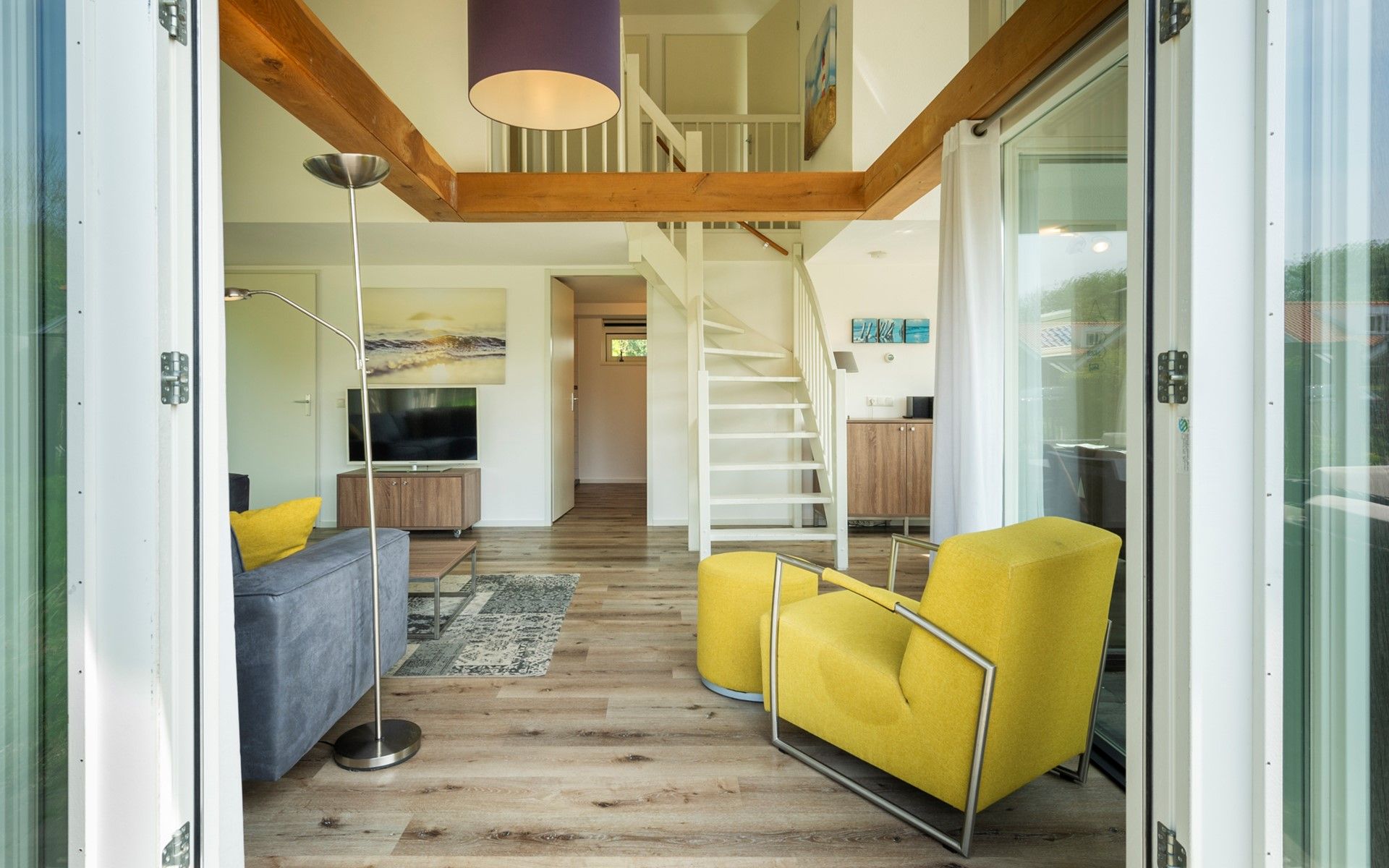 La maison moderne et lumineuse est joliment meublée et se caractérise par des éléments côtiers et de plage. Le salon, avec son coin repas attenant et sa cuisine ouverte entièrement équipée, crée une atmosphère agréable. Le rez-de-chaussée comprend également une salle de bains attenante et des toilettes séparées. À l'étage, vous trouverez deux chambres, une douche supplémentaire et des toilettes séparées.