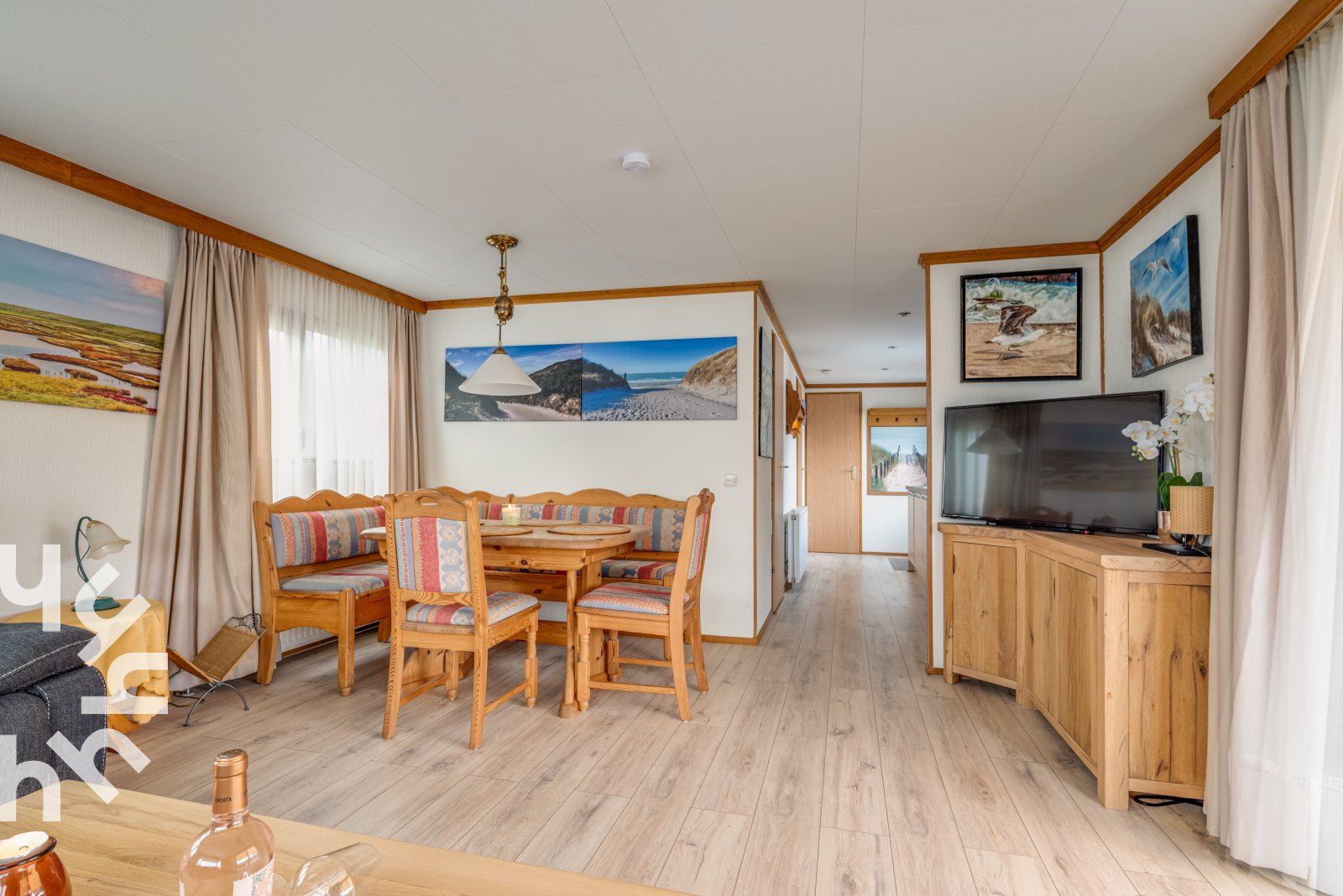 Le chalet dispose d'un salon avec un canapé d'angle et une table avec un banc et deux chaises. La cuisine ouverte est équipée d'un micro-ondes, d'une machine Nespresso, d'une bouilloire, d'un réfrigérateur, d'une cuisinière à quatre feux et d'un grille-pain. Il y a deux chambres à coucher, la première avec un lit double (180x200) et la seconde avec deux lits simples (90x200). La salle de bains est équipée d'une douche, d'un lavabo et de toilettes. Le chalet est chauffé par le chauffage central. À l'extérieur, vous pourrez vous asseoir dans le jardin clos. Celui-ci est équipé d'un salon et d'un parasol. La maison de vacances dispose d'une place de parking pour une voiture. Les autres voitures peuvent être garées sur le parking situé au début du parc.