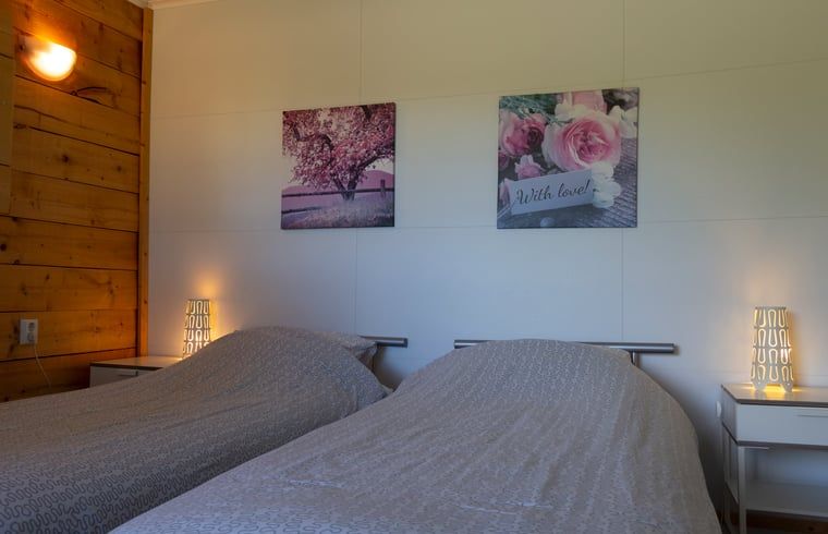 La chambre à coucher a également une vue sur la réserve naturelle. La chambre est équipée pour deux personnes. Si nécessaire, un lit pliant peut être ajouté dans la chambre ou le salon pour une troisième personne.