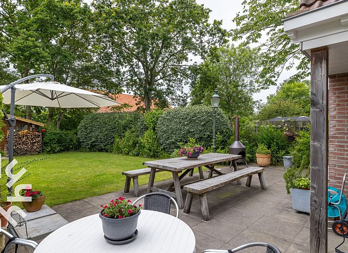 Le salon a des portes qui s'ouvrent sur la terrasse aménagée et le grand jardin. Le jardin arrière est très vert et la clôture est constituée en partie de buissons et en partie de grillage. Sur la terrasse ensoleillée, vous trouverez le mobilier de jardin nécessaire, y compris une table à manger pour huit personnes, un poêle de terrasse (vous pouvez acheter du bois à cet effet auprès du propriétaire) et un parasol. La maison dispose d'un grand jardin ouvert à l'avant.