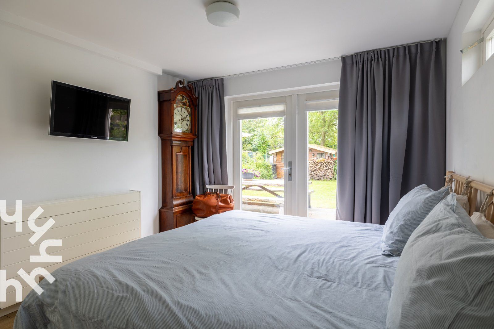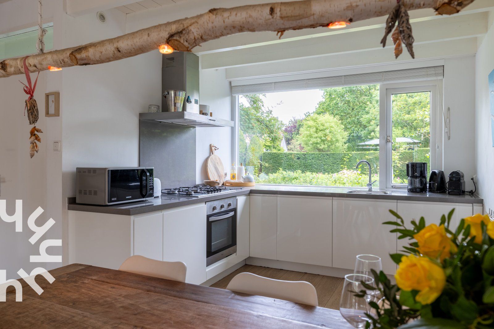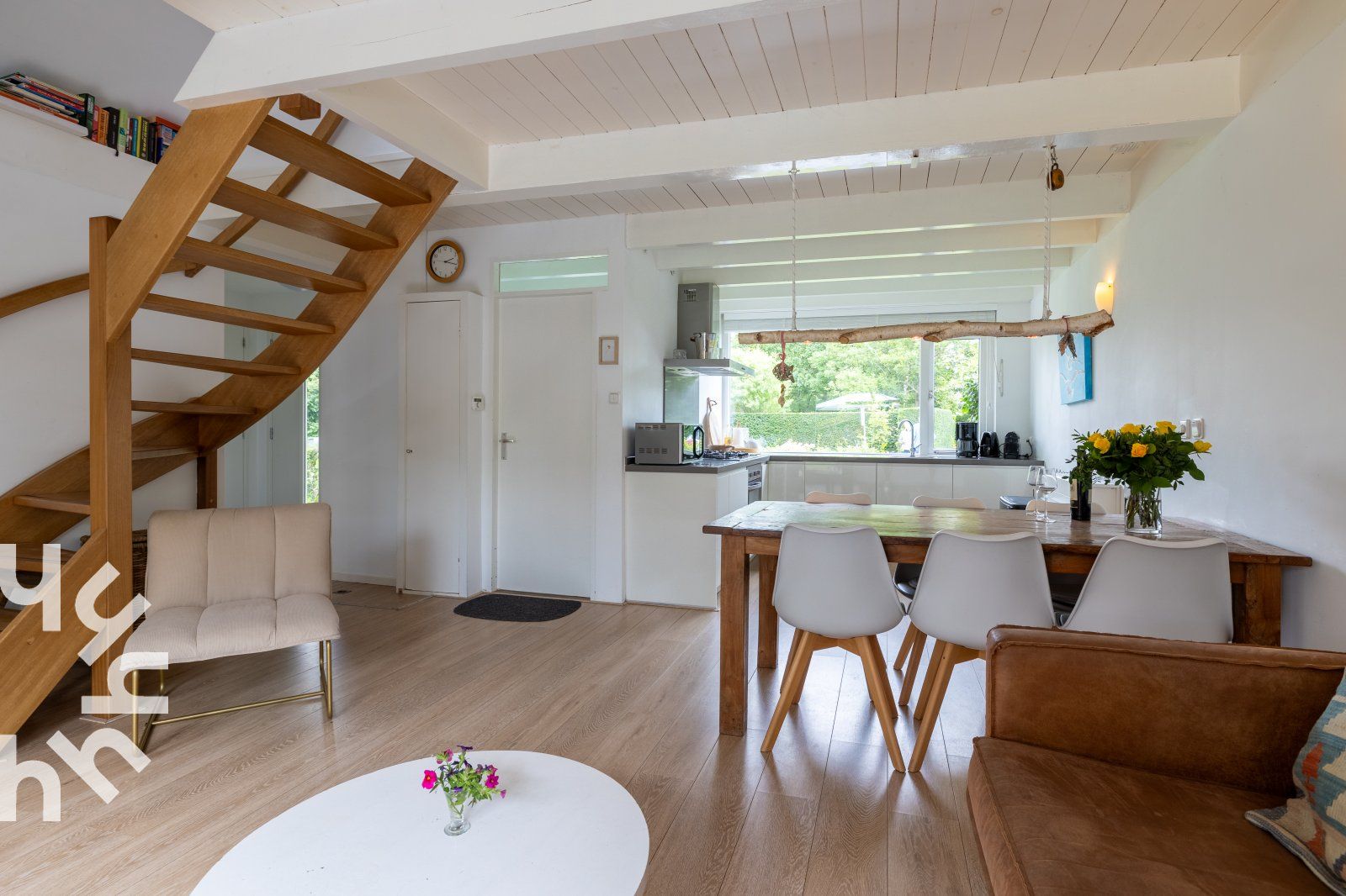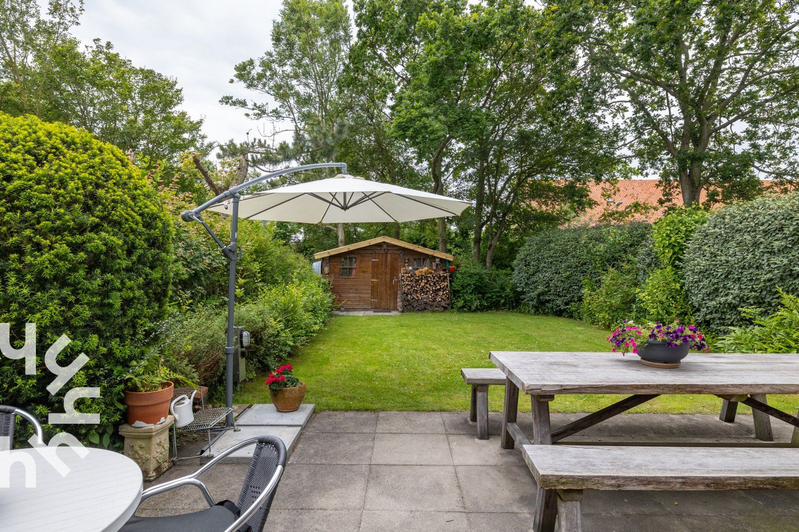 Le salon a des portes qui s'ouvrent sur la terrasse aménagée et le grand jardin. Le jardin arrière est très vert et la clôture est constituée en partie de buissons et en partie de grillage. Sur la terrasse ensoleillée, vous trouverez le mobilier de jardin nécessaire, y compris une table à manger pour huit personnes, un poêle de terrasse (vous pouvez acheter du bois à cet effet auprès du propriétaire) et un parasol. La maison dispose d'un grand jardin ouvert à l'avant.