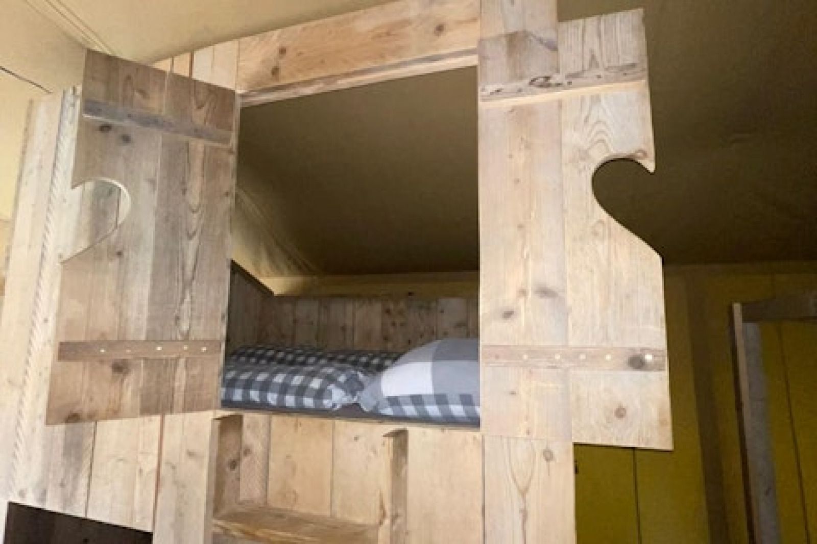 Séjourner dans une tente spacieuse à 7Huizen aan Zee est une façon unique de profiter de vos vacances. La tente peut accueillir six personnes et est entièrement équipée d'une cuisine, d'une douche et de toilettes privées. À l'intérieur, vous trouverez un sommier douillet, un élégant lit à baldaquin et des lits superposés qui, ensemble, assurent un confort de couchage agréable. À l'extérieur, la terrasse couverte vous invite à vous détendre après une journée bien remplie. Ce logement combine l'ambiance du camping avec la commodité d'une chambre entièrement équipée, ce qui est parfait pour des vacances réussies.