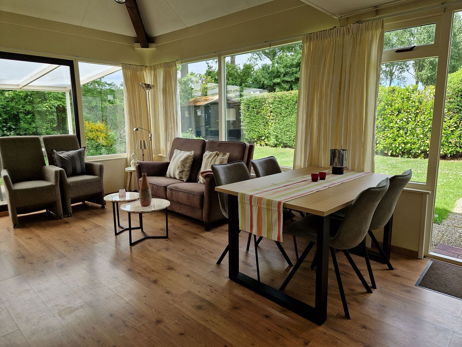 The spacious, sunny garden is fully fenced and offers plenty of privacy, making it ideal for dogs and small children. A large, covered veranda next to barbecue facilities, a dining table for six and sun loungers invite you to spend relaxing hours outdoors. The holiday park in which the bungalow is located is car-free (except for the car park areas) and offers a seasonal swimming pool, playground, trampoline and other amenities as well as a restaurant with an outdoor terrace.