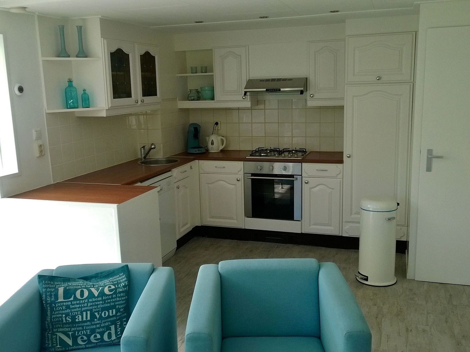 La cuisine est très bien équipée et comprend un lave-vaisselle, un four à micro-ondes, un four, un Senseo, une bouilloire, un réfrigérateur-congélateur, une gazinière et tous les ustensiles de cuisine et de table habituels.